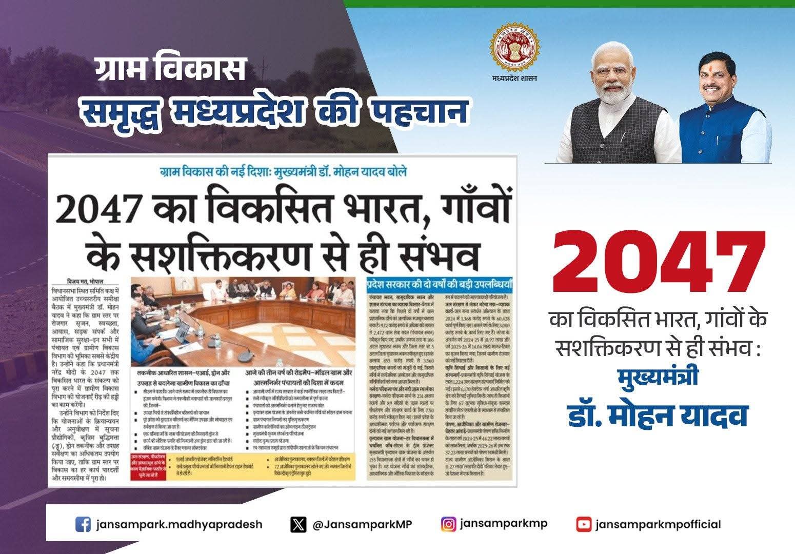 2047 का विकसित भारत, गांवों के सशक्तिकरण से ही संभव : मुख्यमंत्री डॉ. मोहन यादव