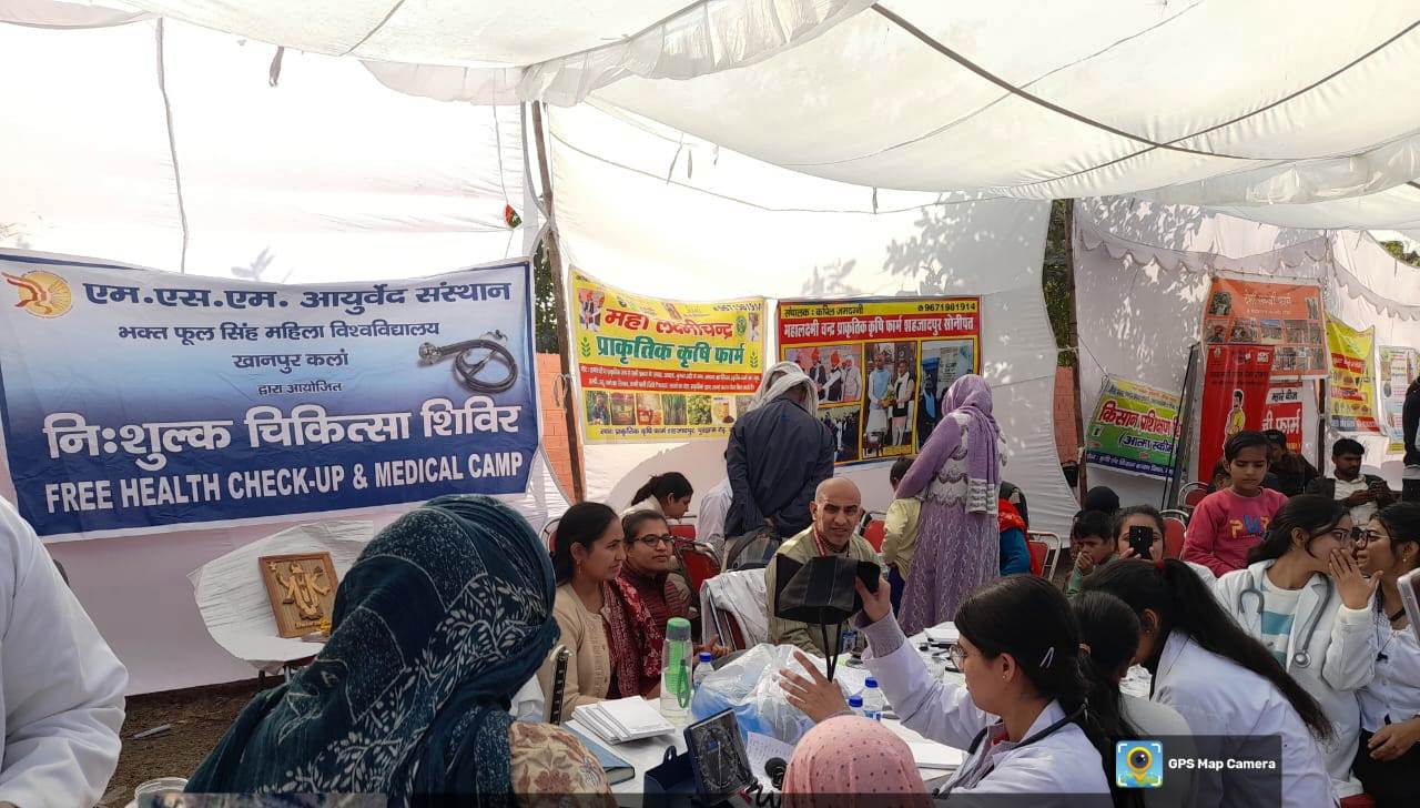 खानपुर कलां -4 दिसंबर। खंड एक गाँव शामडी में शहीद नम्बरदारों के शहीदी दिवस के उपलक्ष्य में आयोजित कार्यक्रम में भगत फूल सिंह महिला विश्वविद्यालय खानपुर कलां के एम एस एम इंस्टीट्यूट ऑफ आयुर्वेद द्वारा शहीद स्मारक पर एक निःशुल्क चिकित्सा शिविर का आयोजन किया गया।