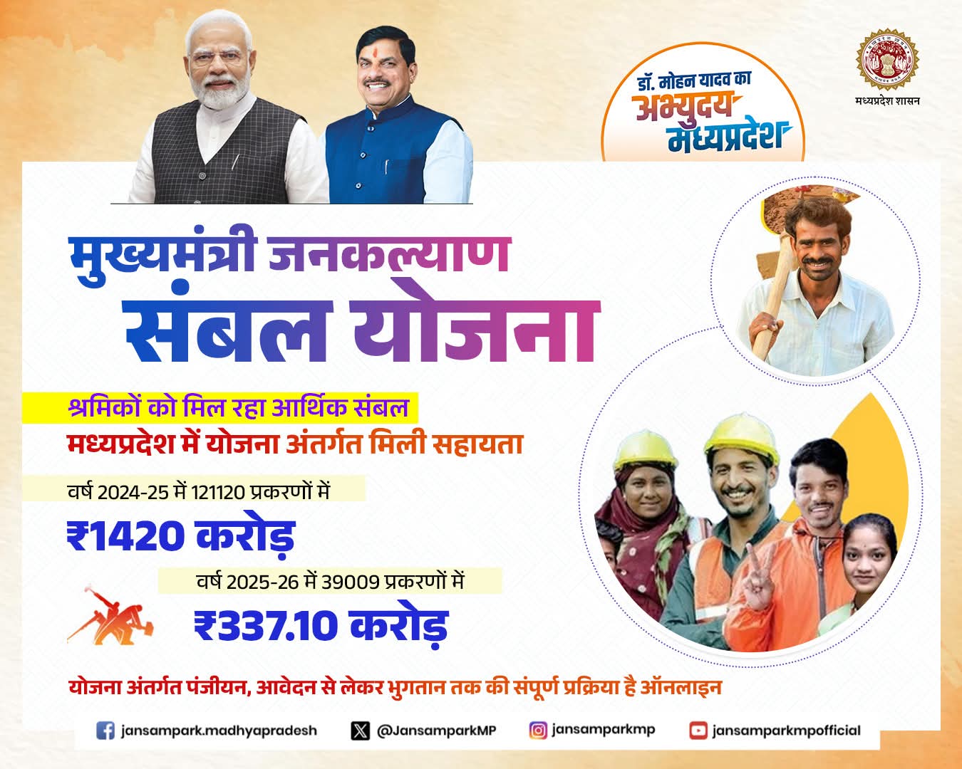 मुख्यमंत्री जनकल्याण संबल योजना श्रमिकों को मिल रहा आर्थिक संबल