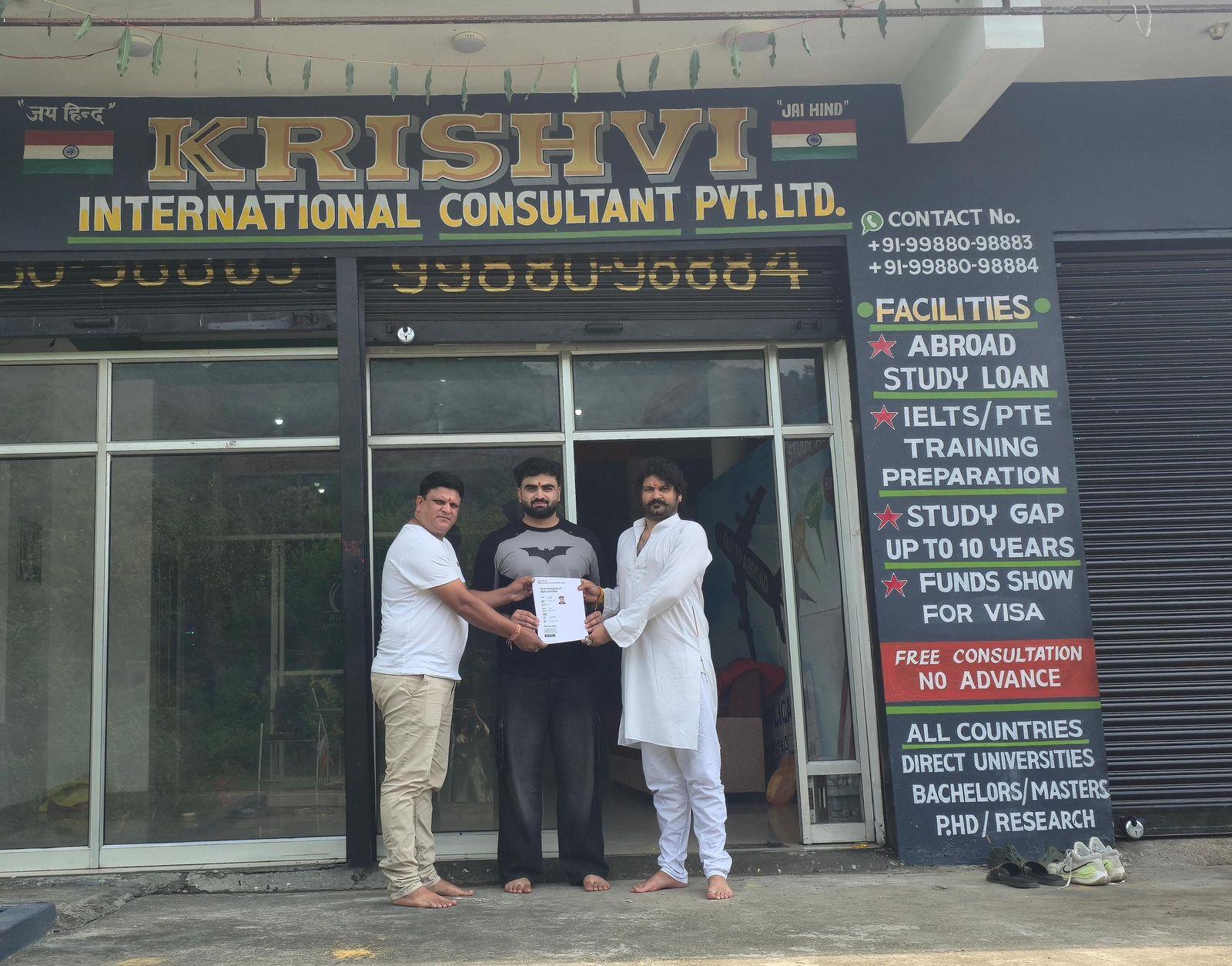 जिला बिलासपुर के घुमारवीं बल्लू बगेड कृष्वी इंटट्रनेशनल प्राइवेट लिमिटेड कंपनी ने शुभम शर्मा सन ऑफ़ सतीश कुमार गांव लमंवोट पोस्ट ऑफिस जोल सपड हमीरपुर जिसने 2024 में पावर लिफ्टिंग गोल्ड मेडल लेकर हिमाचल प्रदेश का नाम रोशन किया और 2025 में नेशनल प्लेयर बनने के बाद अपना भविष्य पावरलिफ्टिंग में देखते हुए इगंलैड जाने का निर्णय लिया और क्रिष्वी इंटरनेशनल कंसलटेंट प्राइवेट लिमिटेड कंपनी के संपर्क में आए ।कंपनी ने शुभम शर्मा को 40 लाख शिक्षा ऋण बिना किसी जमीन या जायदाद के दिलवा के यूनिवर्सिटी ऑफ़ ला लंदन मे मास्टर ऑफ़ साइंस इन स्पोर्ट्स एक्सरसाइज साइकोलॉजी में एडमिशन करवाया ताकि पावरलिफ्टिंग में वह अपना भविष्य उज्जवल कर सकें और हिमाचल प्रदेश और भारत का नाम रोशन करेंl कंपनी ने उनको 3000 पाउंड की स्कॉलरशिप भी दिलवाई ।कंपनी का मुख्य उद्देश्य गरीब परिवार के बच्चों को अच्छी पढ़ाई वह अच्छी कमाई के लिए शिक्षा ऋण और वीजा उपलब्ध करवाना है l यह हिमाचल की एकमात्र ऐसी वीजा कंपनी है जो कि इस तरह के कार्य कर रही हैl हिमाचल के लोगों के साथ लगातार होती आ रही धोखाधड़ी को मध्य नजर रखते हुए सामूहिक विचार किया गया कि कंपनी बीपीएल एवं गरीब परिवार के बच्चे जो विदेश जाकर पढ़ाई करना और कमाई करना चाहते हैं उन्हें कंपनी शिक्षा ऋण बिना किसी जमीन या जायदाद के ही उपलब्ध करवाएगी, IELTS /PTE की तैयारी करवाएगी और वीजा लगवा कर बच्चों को पढ़ने व कमाने के लिए बड़े-बड़े विदेशो जैसे की USA, Canada, UK, Australia, European countries में भेजेगी ।इस मौके पर इमीग्रेशन कंपनी के प्रबंध निदेशक एडवोकेट AK Sharma व मुख्य प्रबंधक करतार सिंह ठाकुर (करन बडैयाल) ने अपने हाथों से वीजा देते हुए शुभम शर्मा के उज्जवल भविष्य के लिए हार्दिक शुभकामनाएं दी।