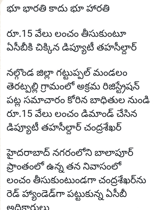 Catched by ACB by taking money deputy thasalider chandarshakar nalgonda district