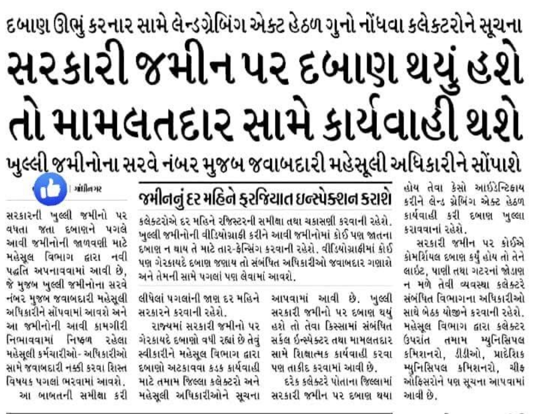 GUJRAT GANDHINAGAR सरकारी जमीन पर किसी भी तरह का दबाव होने पर मामलतदार के खिलाफ कार्रवाई की जाएगी।