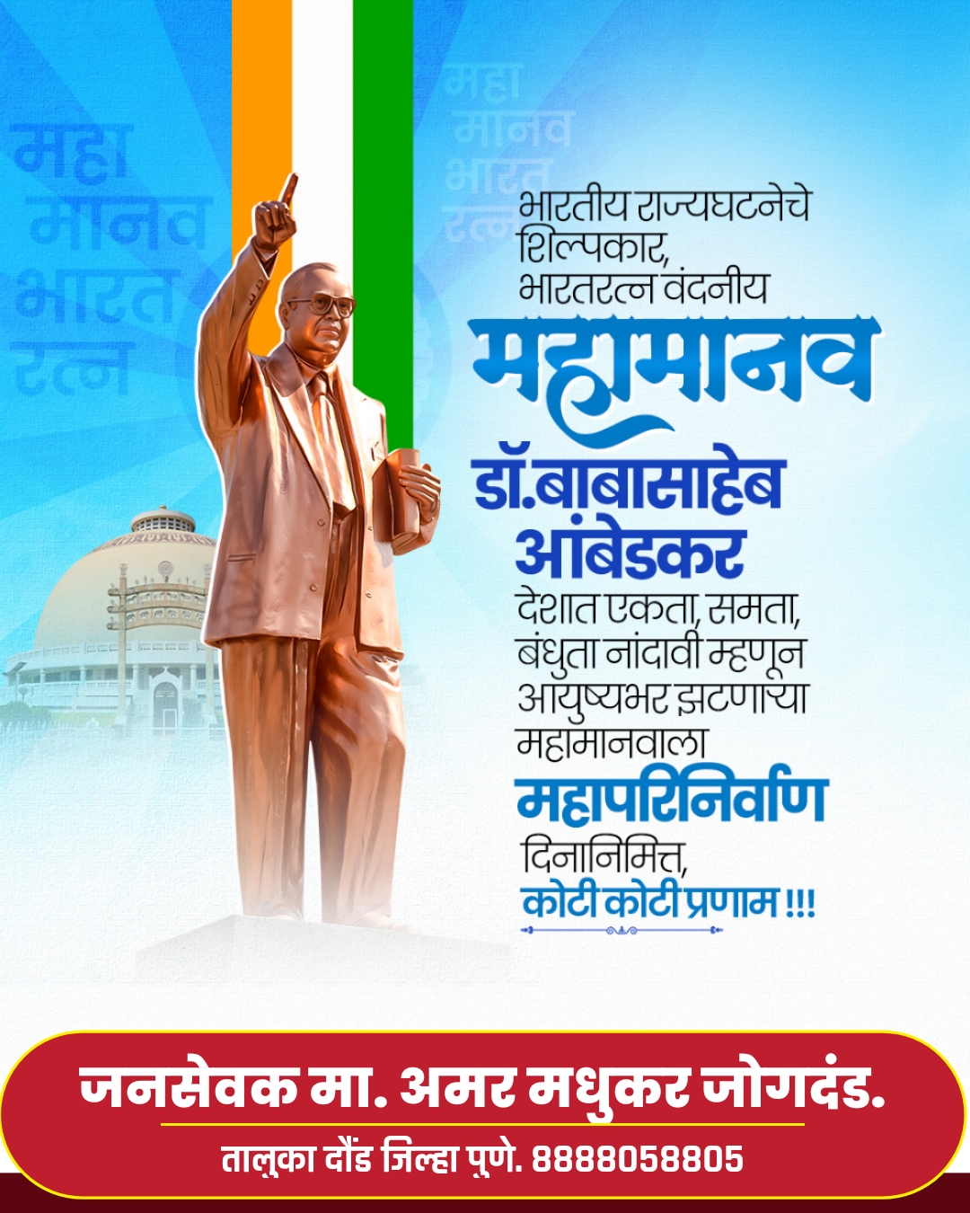 भारतरत्न डॉ. बाबासाहेब आंबेडकर यांच्या महापरिनिर्वाण दिनानिमित्त आम्ही त्यांना विनम्र अभिवादन करतो. 🙏