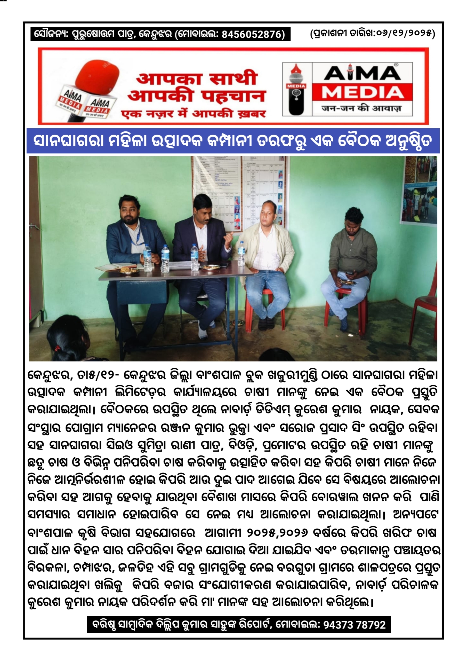 ସାନଘାଗରା ମହିଳା ଉତ୍ପାଦକ କମ୍ପାନୀ ତରଫରୁ ଏକ ବୈଠକ ଅନୁଷ୍ଠିତ।