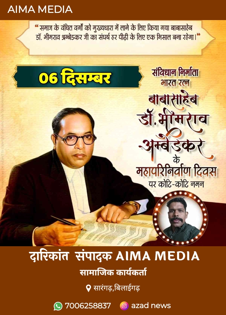 इसी क्रम में AIMA MEDIA के संपादक एवं सामाजिक कार्यकर्ता दारीकांत ने भी बाबा साहेब को विनम्र श्रद्धांजलि अर्पित की। उन्होंने कहा कि—