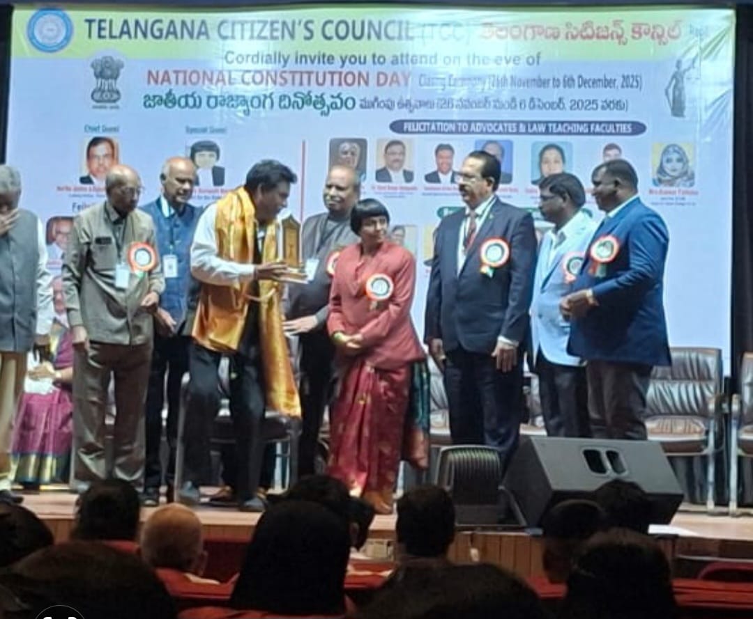 జాతీయ రాజ్యాంగ దినోత్సవం సందర్భంగా హైదరాబాద్ లోని తెలంగాణ సారస్వత పరిషత్‌లో నిర్వహించిన ముగింపు కార్యక్రమంలో, న్యాయరంగంలో ప్రతిభ కనబరిచిన ప్రముఖ న్యాయవాదులను తెలంగాణ సిటిజన్ కౌన్సిల్ ఘనంగా సన్మానించింది. ఈ సందర్భంగా షాద్‌నగర్ పట్టణానికి చెందిన సీనియర్ న్యాయవాది *సన్నిధానం కృష్ణశర్మ* గారిని శాలువాతో సత్కరించి, మెమొంటో అందజేశారు.