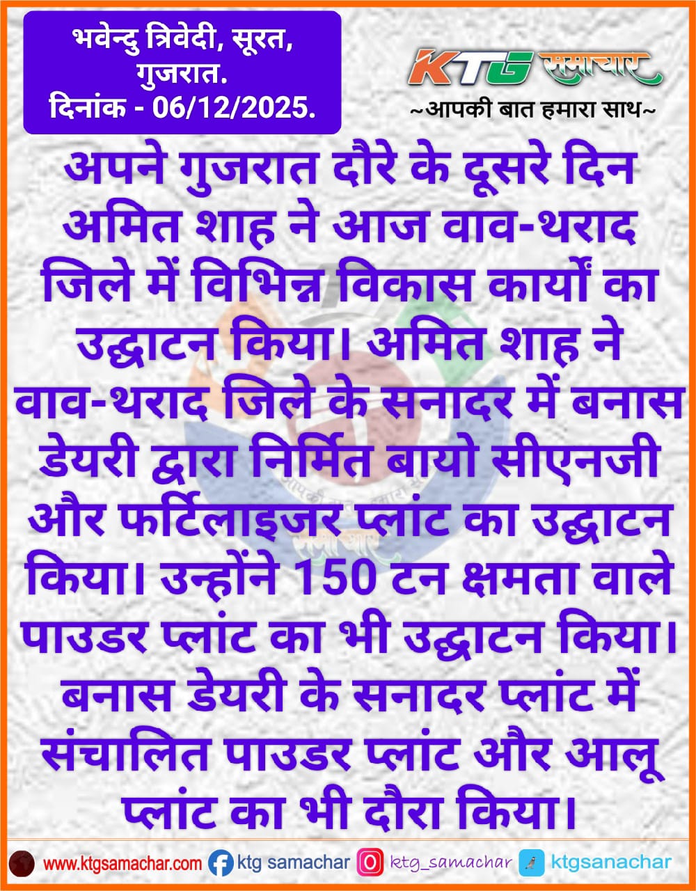 केंद्रीय गृह मंत्री अमित शाह ने आज गुजरात के वाव-थराद जिले में विभिन्न विकास कार्यों का उद्घाटन किया।