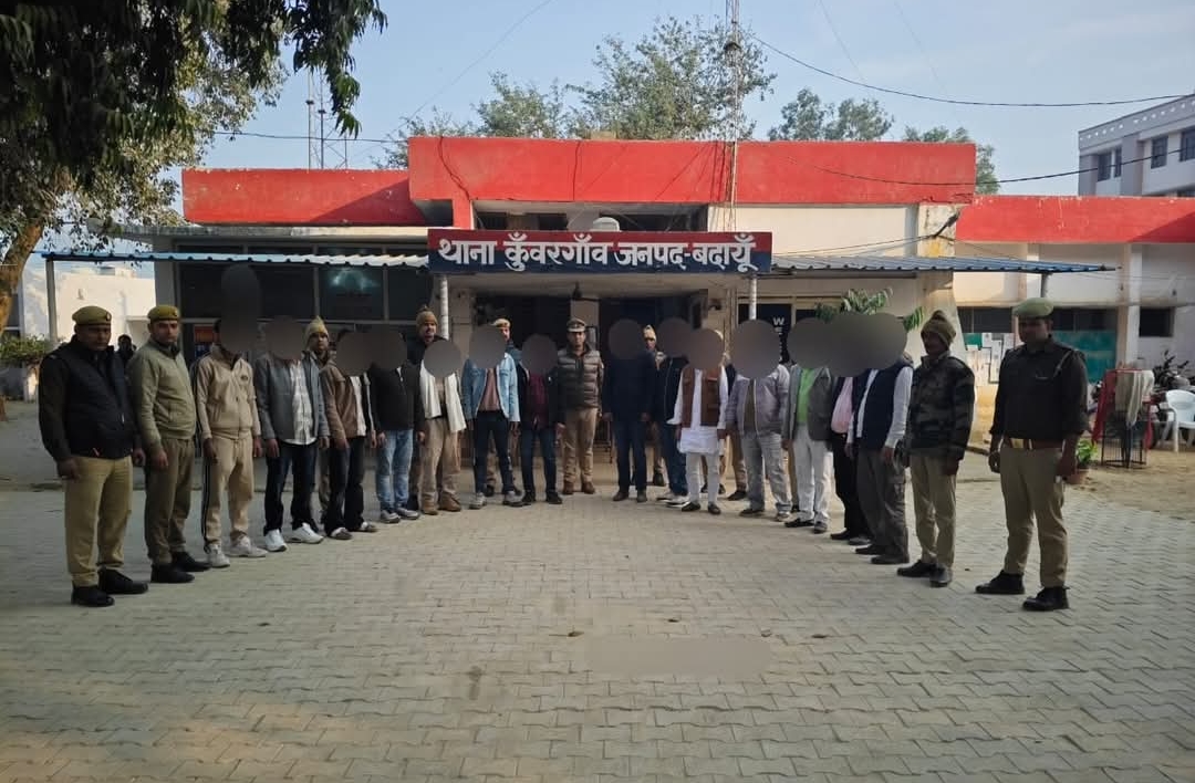 थाना कुंवरगांव क्षेत्रान्तर्गत दिनांक 05.12.2025 की रात्रि मे ग्राम खासपुर मे तिलिया सेम्मल वाले बाबा की मजार पर आयोजित उर्स मे कव्वाली पर पैसे देने की वर्चस्व की बात को लेकर झगडा मारपीट करने के सम्बन्ध मे वादी श्री मोहम्मद सगीर पुत्र मकसूद अली नि0 ग्राम खासपुर थाना कुवंरगाँव जनपद बदायूँ की तहरीर के आधार पर दिनांक 06.12.2025 को थाना कुंवरगांव पर मु0अ0सं0 195/25 धारा 191(2)/191(3)/190/109 बीएनएस बनाम 01. खुर्शीद पुत्र न्याय अहमद 2. शारिफ पुत्र खुर्शीद 3. नन्हे पुत्र जियाउद्दीन 4. रहागीर पुत्र नन्हे 5. मुस्लिम पुत्र इकरार 6. विकार पुत्र इस्लाम 7. स्वाले पुत्र हुजूर अहमद नि0गण ग्राम खासपुर थाना कुंवरगाँव जनपद बदायूँ तथा अज्ञात व्यक्तियो के विरुद्ध पंजीकृत किया गया । घटना के अनावरण हेतु वरिष्ठ पुलिस अधीक्षक बदायूँ, डा0 बृजेश कुमार सिंह के आदेशानुसार तथा अपर पुलिस अधीक्षक नगर बदायूँ श्री विजयेन्द्र द्विवेदी के निर्देशन में तथा क्षेत्राधिकारी नगर के पर्यवेक्षण में एवं थाना प्रभारी कुंवरगांव के नेतृत्व में आज दिनाँक 06.12.2025 को उक्त घटना में संलिप्त प्रकाश मे आये 14 अभियुक्तगण 1. अरमान पुत्र अकरम उम्र करीब 19 वर्ष 2. शारिक पुत्र अब्दुल रहमान उम्र करीब 29 वर्ष 3. शवाब पुत्र अकरम उम्र करीब 23 वर्ष 4. आफताब पुत्र मो0 अफसर उम्र करीब 42 वर्ष 5. मो0 शावेज पुत्र मो0 असलम उम्र करीब 37 वर्ष 6. मो0 शारिक पत्र मो0 असलम उम्र करीब 34 वर्ष 7. मो0 महताब पुत्र मो0 अफसर उम्र करीब 35 वर्ष 8. मुशीर पुत्र मुनीफ आलम उम्र करीब 38 वर्ष नि0गण ग्राम खासपुर थाना कुंवरगाँव जनपद बदायूँ 9. तारिक पुत्र जान मोहम्मद उम्र करीब 36 वर्ष 10. विकार पुत्र वली रजा उम्र करीब 45 वर्ष नि0गण ग्राम लाही फरीदपुर थाना कुंवरगाँव जनपद बदायूँ 11. आकिब पुत्र तौकीर अहमद उम्र करीब 19 वर्ष नि0 ग्राम बनेई थाना कुंवरगाँव जनपद बदायूँ 12. आमीर पुत्र राशिद उम्र करीब 26 वर्ष नि0 ग्राम दुगरैया थाना कुंवरगाँव बदायूँ 13. मो0 हसनैन पुत्र सरीयतउल्ला उम्र करीब 38 वर्ष नि0 ग्राम हुसैनपुर थाना कुंवरगाँव जनपद बदायूँ 14. अमजद हसन पुत्र जवारुल हसन उम्र करीब 32 वर्ष नि0 आरिफपुर नवादा थाना सिविल लाइन जनपद बदायूँ को बदायूँ कुंवरगाँव मार्ग पर ग्राम कासिमपुर तिराहे से गिरफ्तार कर माननीय न्यायालय के समक्ष पेश किया गया।