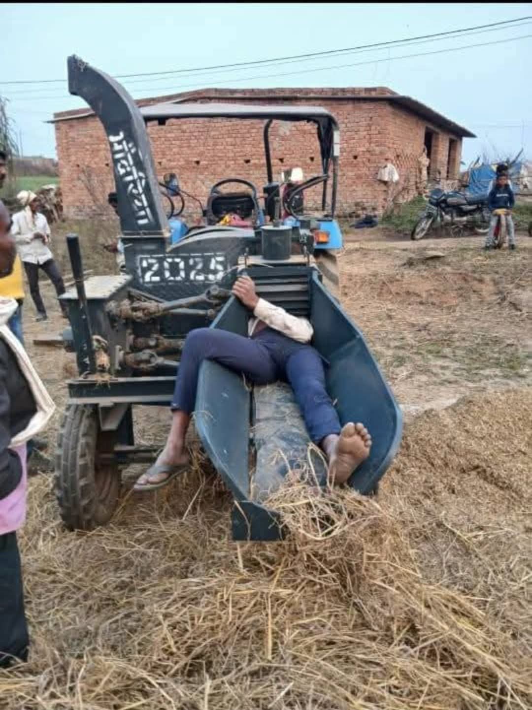 भूसा काटने वाली मशीन में जा घुसा युवक।