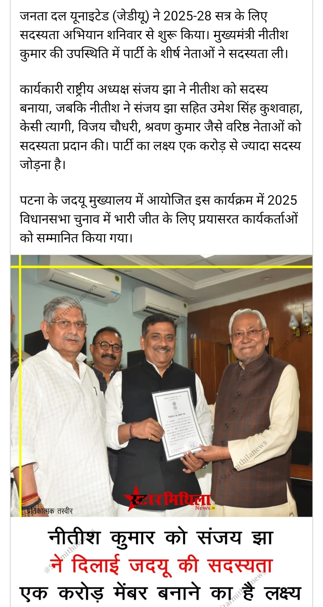 जनता दल यूनाइटेड सदस्यता अभियान 2025-2027
