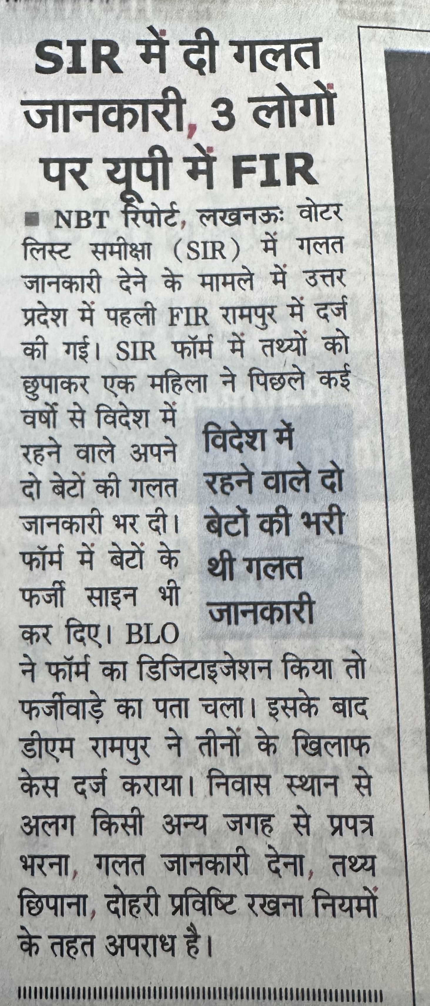 SIR में दी ग़लत जानकारी 03 logo पर यूपी में FIR