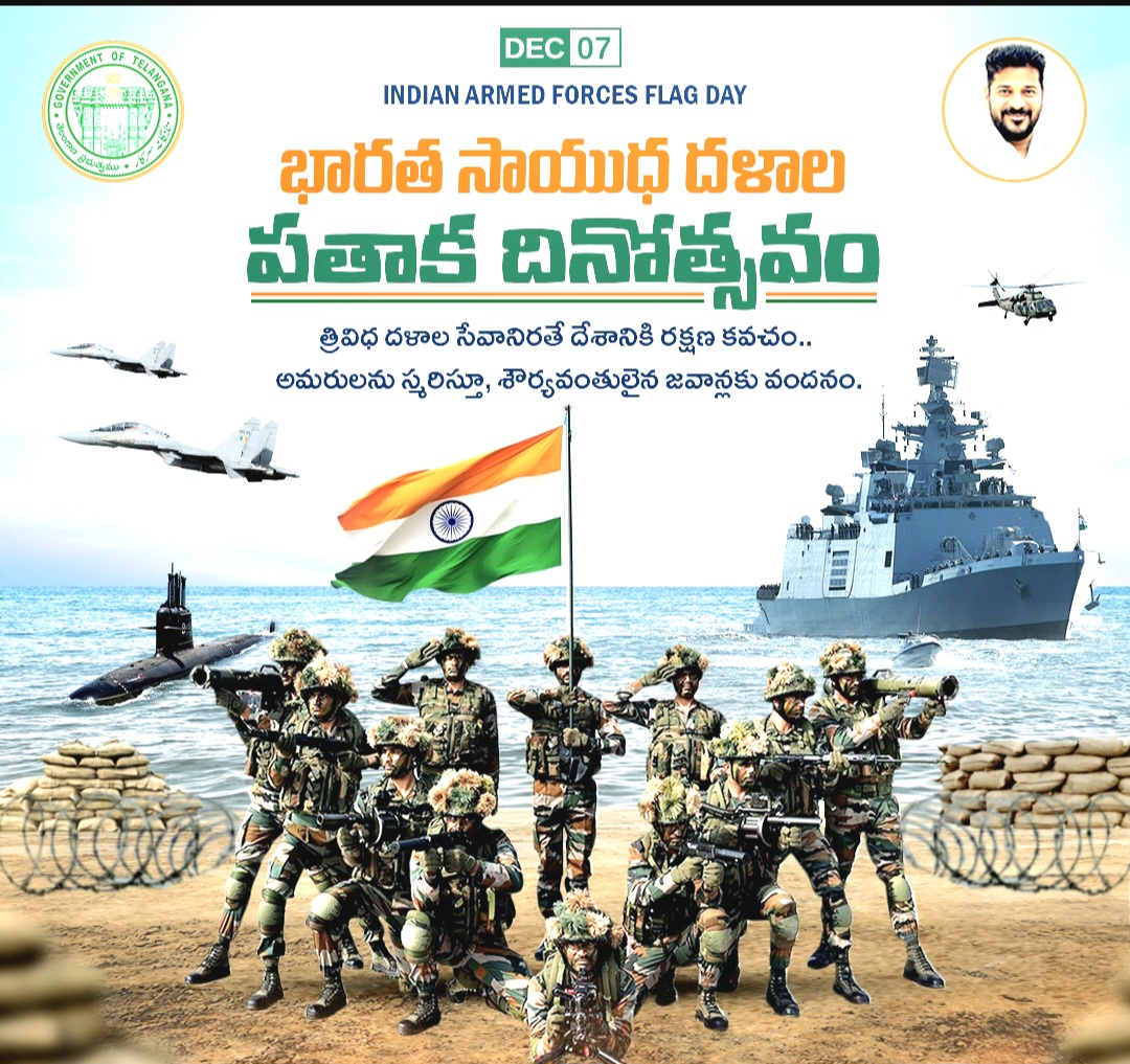 Hon'ble Chief Minister Shri A. Revanth Reddy expressed heartfelt gratitude to the courageous personnel of the Armed Forces and their families on the occasion of Indian Armed Forces Flag Day.