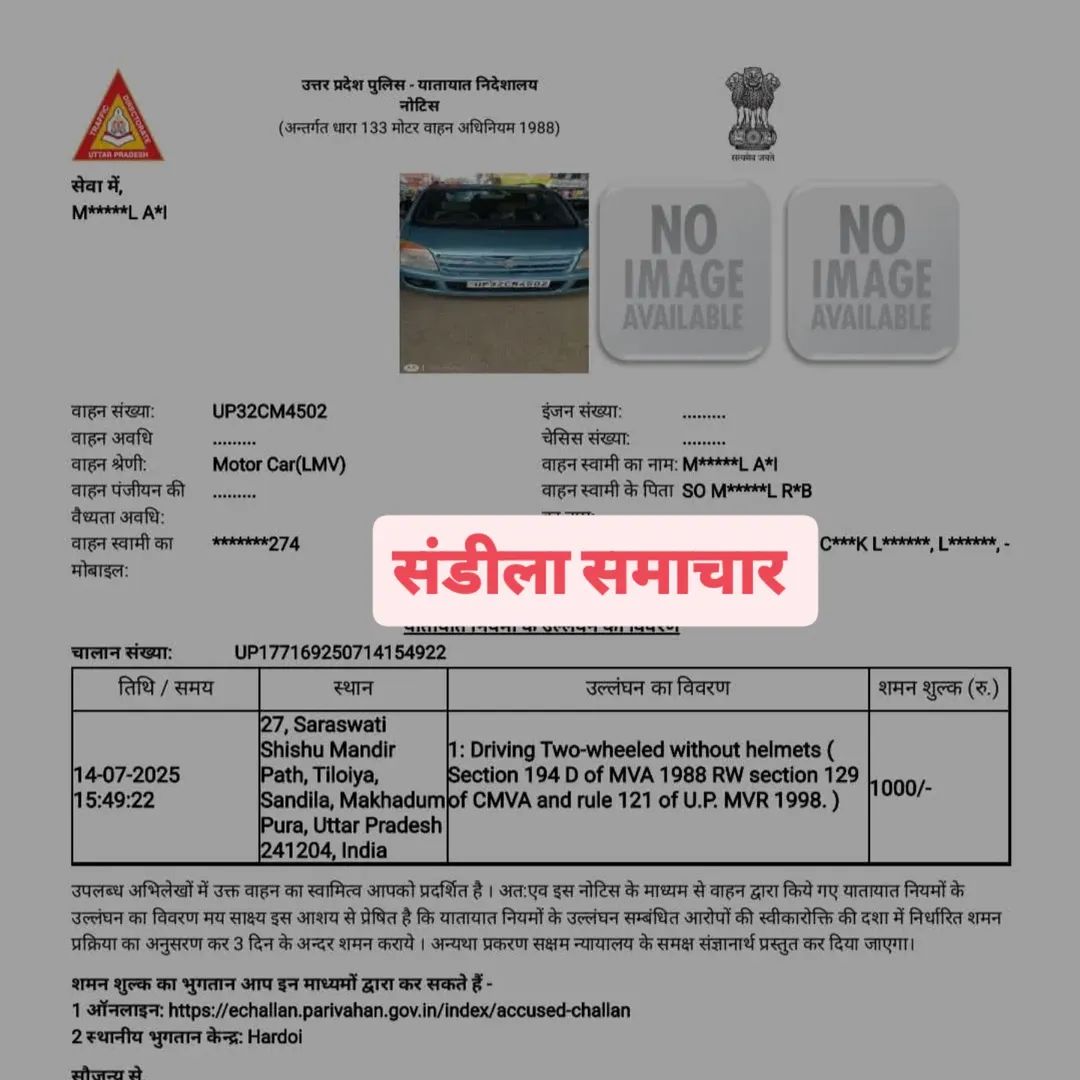 #संडीला #ब्रेकिंगन्यूज़ #TrafficPolice #FunnyChalan