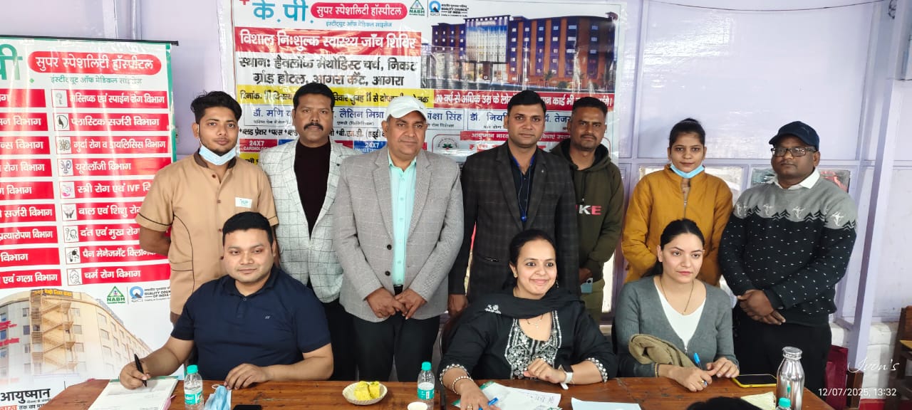 आगरा, के.पी. सुपर स्पेशलिटी हॉस्पिटल (इंस्टीट्यूट ऑफ मेडिकल साइंसेज), आगरा द्वारा समाज सेवा की दिशा में एक महत्वपूर्ण कदम उठाते हुए, दिनांक 07 दिसंबर 2025, रविवार को हैवलॉक मेथोडिस्ट चर्च, निकट ग्रैंड होटल, आगरा कैंट, आगरा में एक विशाल निःशुल्क स्वास्थ्य जांच शिविर का सफल आयोजन किया गया। यह शिविर सुबह 11 बजे से दोपहर 2 बजे तक आयोजित किया गया।