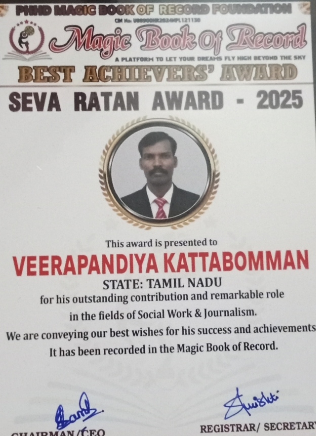 Magic book of record ward achiever veerapandiya kattabomman tamilnadu state.