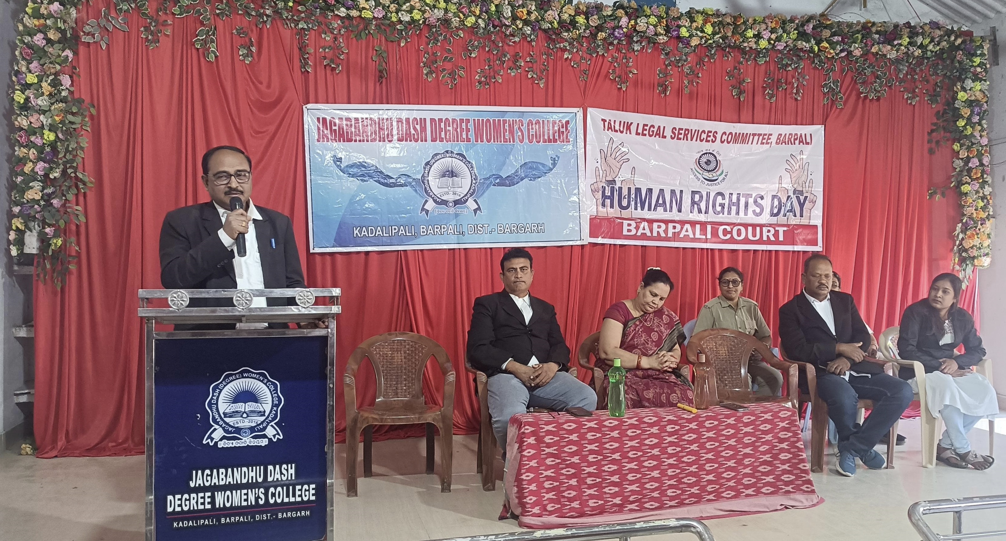 A seminar on Barpalli Taluk Legal Services and Human Rights Day was held under the chairmanship of Padmini Dash, Principal of Jagabandhu Dash Degree Women's College. On this occasion, senior citizen advocates Rabindra Panda, Bablu K Sahu, Himanshu Shekhar Sahu, Binapani Padhan participated and discussed about human rights awareness and informed the common people about free legal aid, free legal advice, and the process of speedy justice provision by informing them about the rights of women-children-senior citizens. The speakers said that every citizen needs legal awareness to protect human rights. The Taluk Legal Services Committee is continuously working to provide justice to the poor, helpless and oppressed. Court Police colleagues including Dileswar Dash of Court participated in the campaign and made presentations about their rights and duties. All the faculty members, staff and students, including the founder of the college, Antaryami Panda, participated in the discussion and Jatindra Kumar Sahu, lecture of the Odia Department, proposed the vote of thanks.