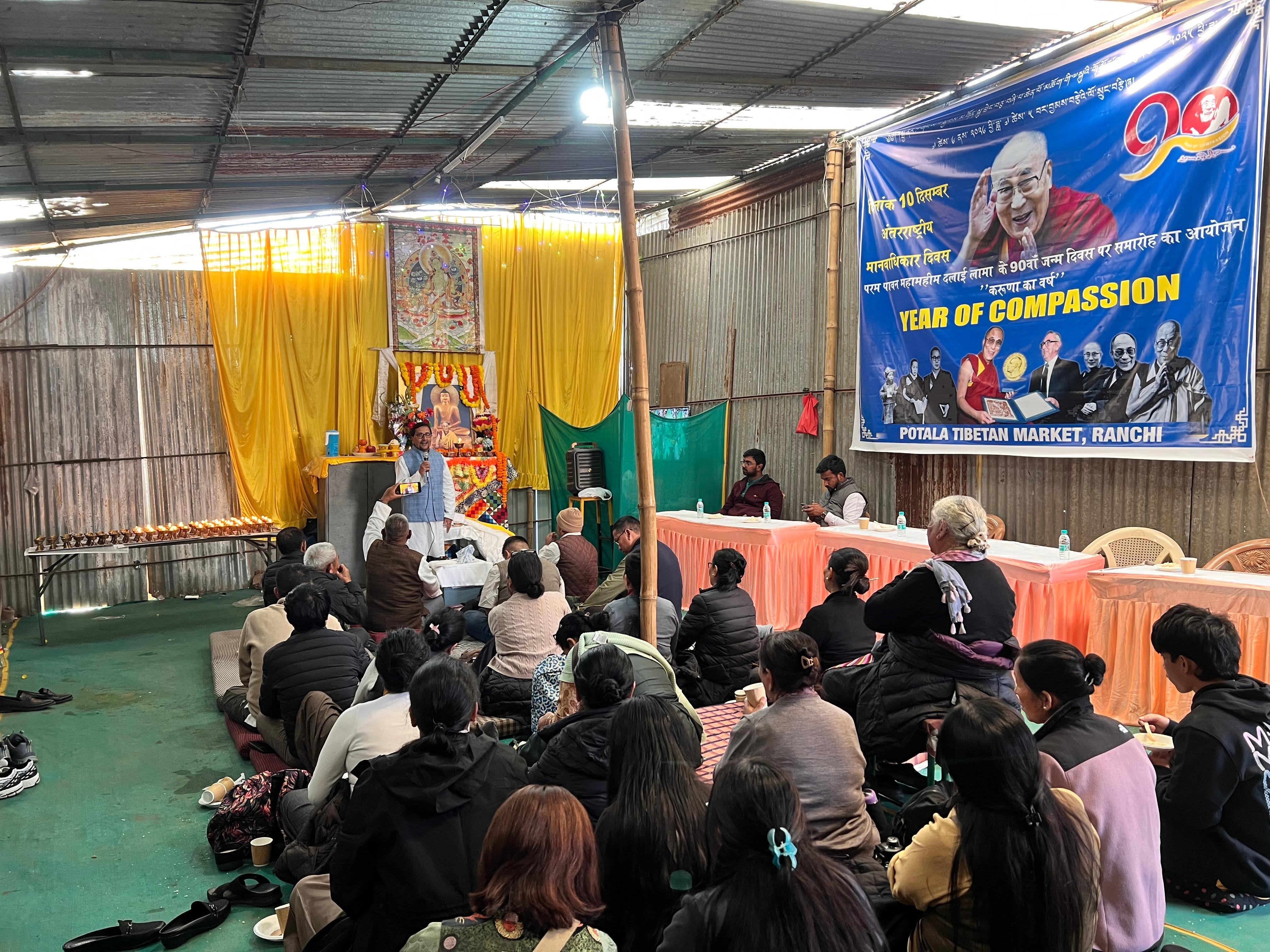 रांची : राष्ट्रीय मानवाधिकार दिवस के अवसर पर बुधवार को रांची के लालपुर स्थित पोटाला तिब्बत रिफ्यूजी मार्केट परिसर में पोटाला तिब्बत रिफ्यूजी मार्केट और भारत तिब्बत मैत्री संघ द्वारा विशेष कार्यक्रम का आयोजन किया गया , कार्यक्रम की शुरुवात सभी ने अपने परंपरा के अनुसार महात्मा गौतम बुद्ध , परम पावन दलाई लामा को पुषप अर्पित एवं पूजा- पाठ कर शुरुवात की गयी । कार्यक्रम में पोटाला तिब्बत मार्केट के अध्यक्ष टी. दोरजे ने कहा कि तिब्बत में मानवाधिकारों का गंभीर उल्लंघन हो रहा है। उन्होंने आरोप लगाया कि चीन तिब्बती युवाओं को जबरन चीनी बोर्डिंग स्कूलों में भेज रहा है, जिससे तिब्बती भाषा, संस्कृति और पहचान पर खतरा बढ़ गया है। दोरजे ने कहा कि भारत और तिब्बत के ऐतिहासिक संबंधों को ध्यान में रखते हुए केंद्र सरकार को तिब्बत की आजादी और मानवाधिकारों की बहाली के लिए पहल करनी चाहिए।भारत तिब्बत मैत्री संघ के महासचिव अनिल अरुण ने जानकारी दी कि इस वर्ष दलाई लामा के 90वें जन्मवर्ष और मानवाधिकार दिवस को करुणा वर्ष के रूप में मनाने का निर्णय लिया गया है। उन्होंने कहा कि दलाई लामा ने पिछले कई दशकों से अहिंसा के मार्ग पर तिब्बत मुक्ति आंदोलन को आगे बढ़ाया है।उपाध्यक्ष दिलीप वर्मा ने बताया की अभी के समय मे पुरे वर्ल्ड मे जिस तरह से किसी भी बातो को लेकर तुरंत अत्याधुनिक हथियारों से अकाश - पाताल मे यूद्ध छिड़ जा रही है, परंतु तिब्बत के लोग वर्षो से अहिंसा के रास्ते पर चलकर पुरी दुनियां मे अपनी बातो को मनवाने की कोशिश मे लगे है ।