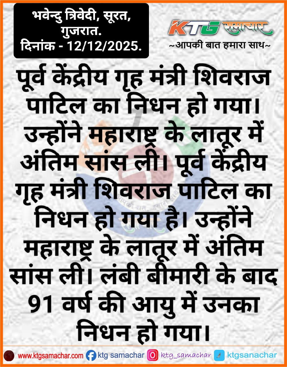 पूर्व केंद्रीय गृह मंत्री शिवराज पाटिल का निधन हो गया।
