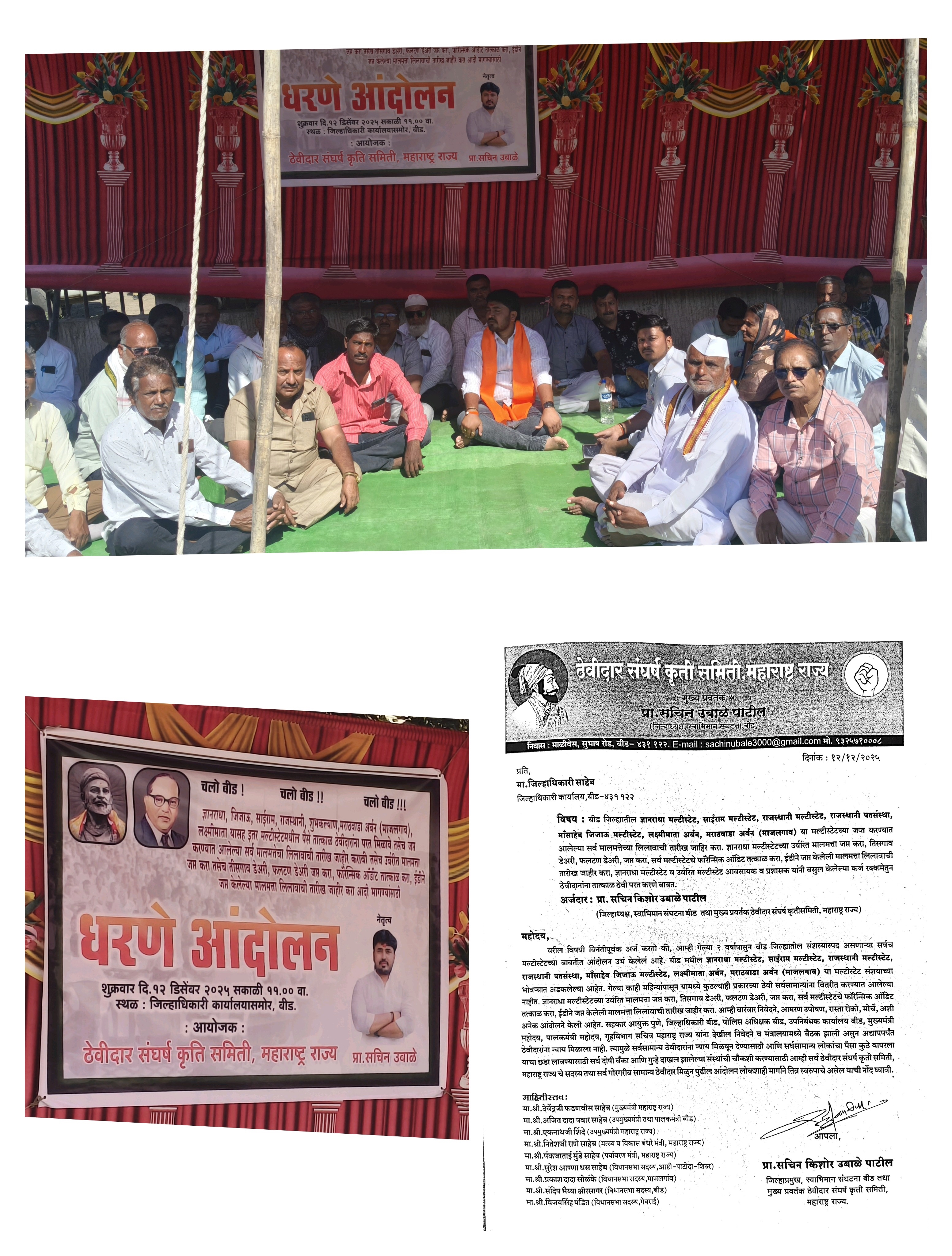 बीड जिल्ह्यातील विविध मल्टीस्टेट संस्थांमध्ये अडकलेल्या हजारो ठेवीदारांना न्याय मिळावा, जप्त केलेल्या मालमत्तेच्या लिलावाची तारीख जाहीर करावी तसेच वसूल रक्कम ठेवीदारांना परत द्यावी, या प्रमुख मागण्यांसाठी आज ठेवीदार संघर्ष कृती समिती, महाराष्ट्र राज्य यांच्या वतीने बीड जिल्हाधिकारी कार्यालयासमोर धरणा आंदोलन करण्यात आले.