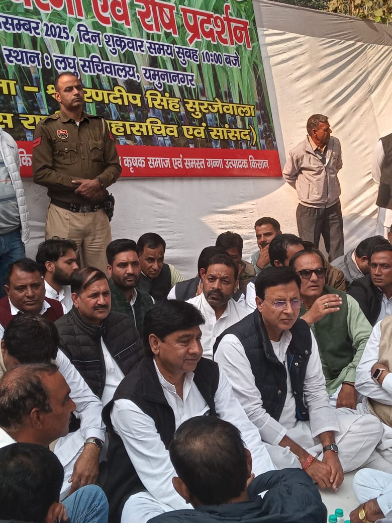 आज युमनानगर में गने के भाव की बढ़ोतरी के लिये किसान विशाल एवं धरना प्रदर्शन में शामिल पूर्व विधायक अनिल धनतोड़ी जी और आल इंडिया कांग्रेस कमेटी के राष्ट्