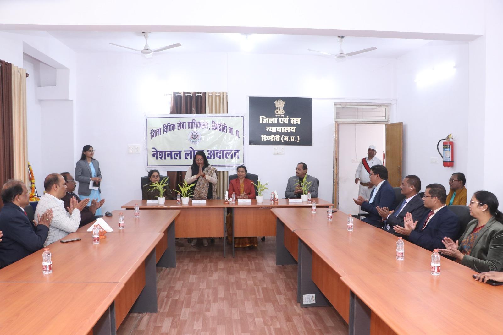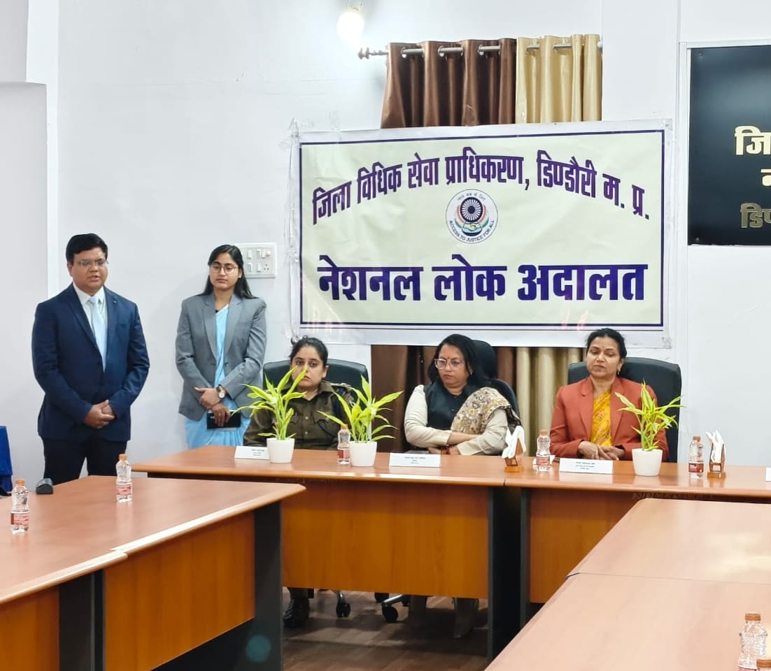 डिंडोरी।राष्ट्रीय विधिक सेवा प्राधिकरण नई दिल्ली व मध्य प्रदेश राज्य विधिक सेवा प्राधिकरण जबलपुर के निर्देशन में एवं माननीय प्रधान जिला एवं सत्र न्यायाधीश / अध्यक्ष जिला विधिक सेवा प्राधिकरण डिण्डौरी श्रीमति शशिकान्ता वैश्य के मार्गदर्शन में नेशनल लोक अदालत का आयोजन दिनांक 13 दिसंबर 2025 को किया गया, आयोजित सफल लोक अदालत का शुभारंभ माननीय प्रधान जिला एवं सत्र न्यायाधीश / अध्यक्ष जिला विधिक सेवा प्राधिकरण श्रीमति शशिकान्ता वैश्य, कलेक्टर श्रीमति अंजू पवन भदौरिया, पुलिस अधीक्षक श्रीमति वाहनी सिंह एवं अध्यक्ष अधिवक्ता संघ यू.के पटेरिया द्वारा माँ सरस्वती की छायाचित्र पर मार्त्यापण एवं दीप प्रज्ज्वलित कर किया गया। आयोजित नेशनल लोक अदालत में माननीय श्रीमति शशिकान्ता वैश्य प्रधान जिला न्यायाधीश द्वारा व्यक्त किया गया कि नेशनल लोक अदालत में न्यायालयों में लंबित पारिवारिक विवाद, मोटरयान दुर्घटना दावा, चैक अनादरण एवं विभिन्न राजीनामा योग्य आपराधिक व दीवानी प्रकरण आपसी समझौते व सुलह के आधार पर निराकृत होगें, लोक अदालत में बैंकों की ऋण वसूली, विद्युत एवं दूरभाष बिल बकाया एवं नगर पालिका के संपत्ति व जल कर से संबंधित मुकदमा पूर्व प्रकरणों का निराकरण भी उभय पक्षों की सहमति से होगा।