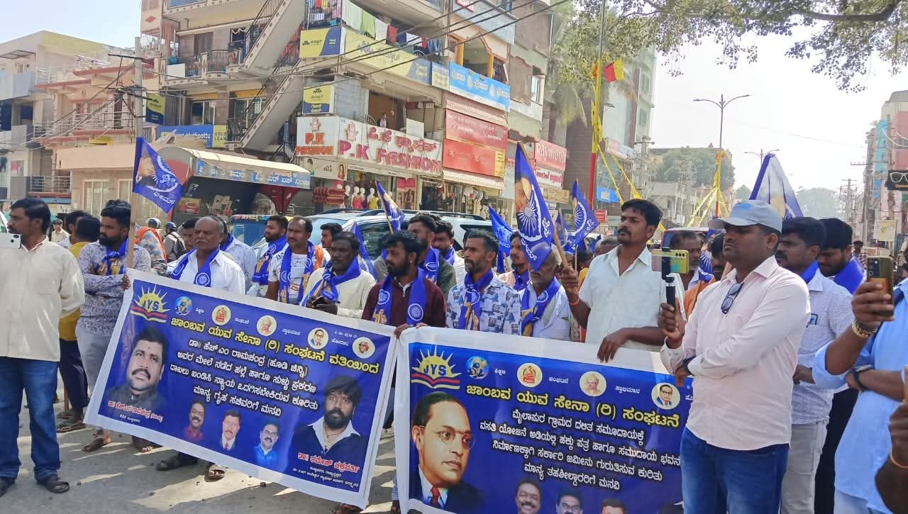 ಜಾಂಬವ ಯುವ ಸೇನಾ ಸಂಘಟನೆ ವತಿಯಿಂದ ಹಮ್ಮಿಕೊಂಡಂತಹ ಪ್ರತಿಭಟನೆ