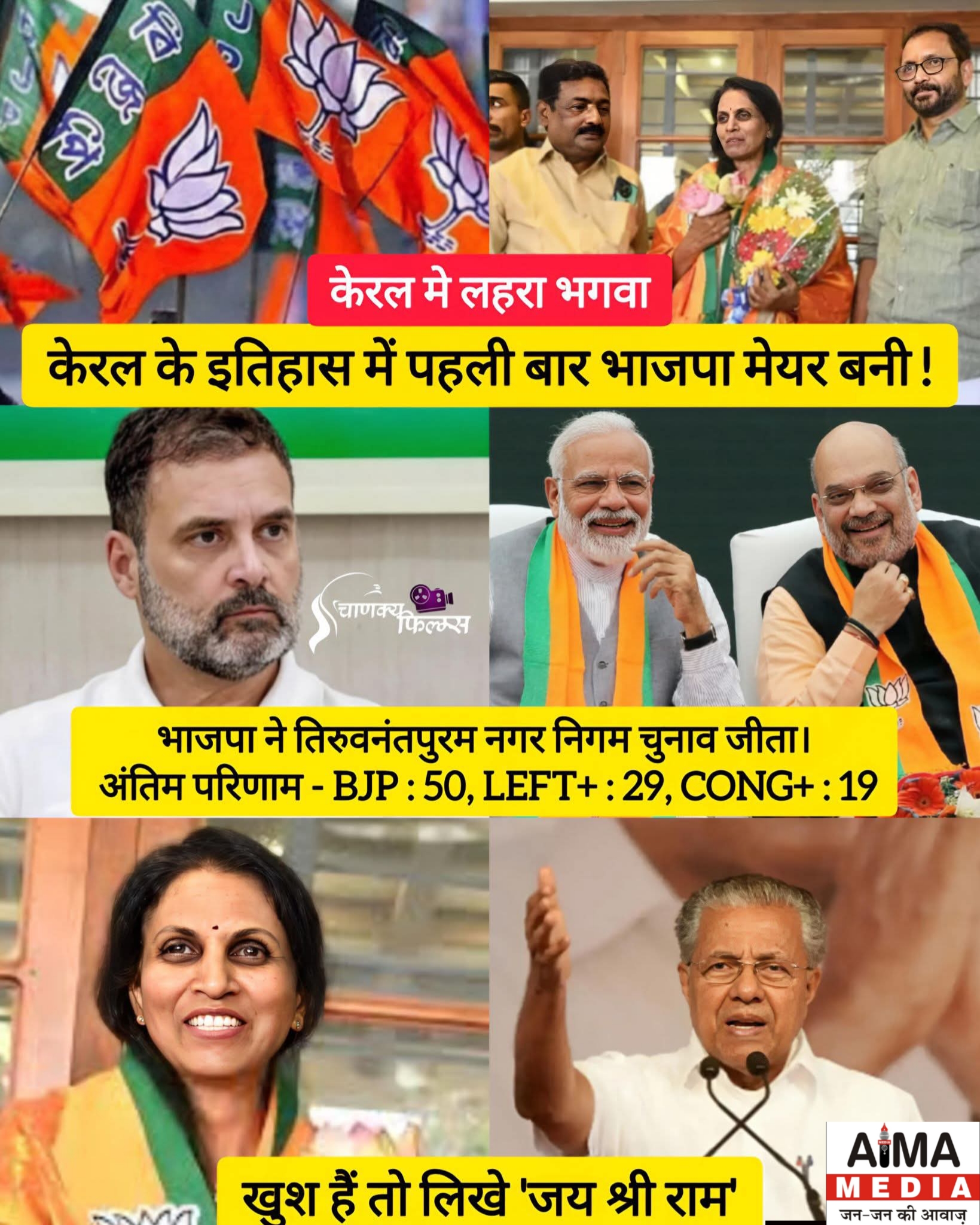 खबर केरल से केरल के इतिहास में पहली बार भाजपा मेयर बनी!