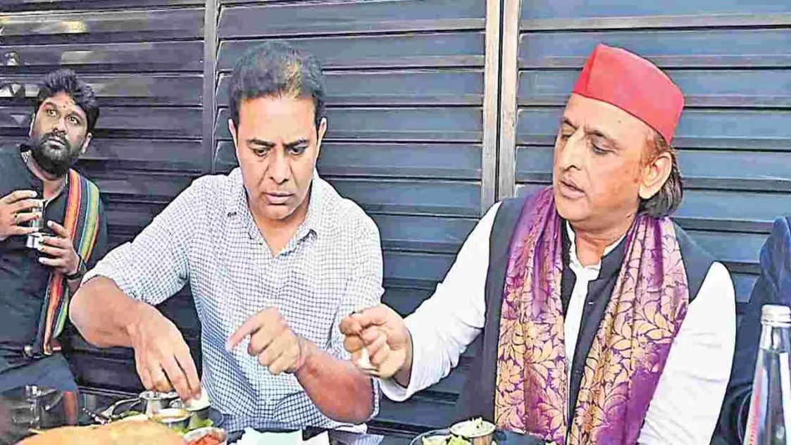 సమాజ్వాదీ పార్టీ అధినేత అఖిలేశ్ యాదవ్తో కలిసి బీఆర్ఎస్ వర్కింగ్ ప్రెసిడెంట్ కేటీఆర్ శనివారం మధ్యాహ్నం మాదాపూర్లోని రామేశ్వరం కెఫేలో లంచ్ చేశారు. ఈ కెఫేలో రుచుల గురించి, ప్రత్యేకమైన టిఫిన్స్ గురించి తెలుసుకున్న అఖిలేశ్ యాదవ్ ఆసక్తి మేరకు కేటీఆర్ అక్కడ మధ్యాహ్న భోజన ఏర్పాట్లు చేశారు. ఇద్దరు నేతలు రుచులను ఆస్వాదిస్తూ పలు రాజకీయ, సమకాలీన అంశాలపై కాసేపు ముచ్చటించారు. అంతకుముందు కేటీఆర్ మధ్నాహ్నం 3 గంటలకే హోటల్కు రాగా 3.35 గంటలకు అఖిలేశ్ యాదవ్ వచ్చారు. లంచ్ తర్వాత ఇద్దరు నేతలు కలిసి మాజీ మంత్రి తలసాని శ్రీనివాస్ యాదవ్ నివాసానికి వెళ్లారు.