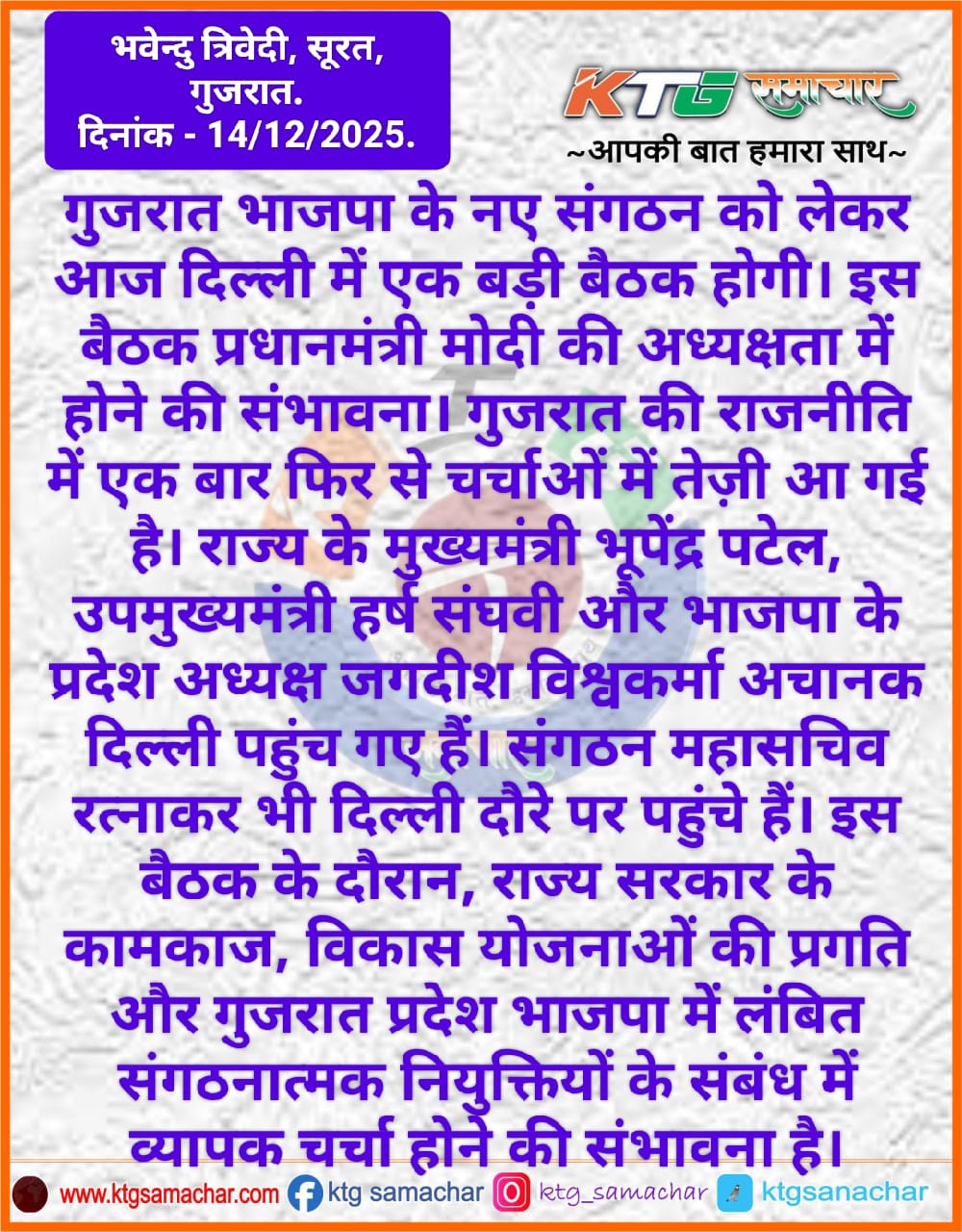 गुजरात भाजपा के नए संगठन को लेकर आज दिल्ली में एक बड़ी बैठक होगी।