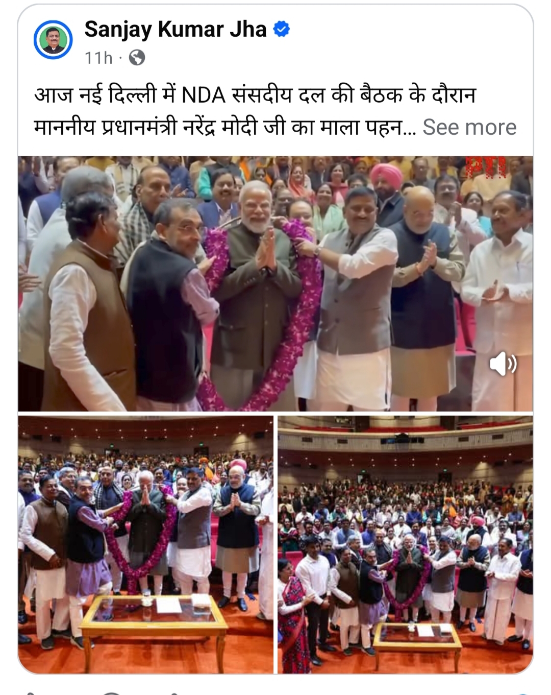 नई दिल्ली में NDA संसदीय दल की बैठक में प्रधानमंत्री का स्वागत।