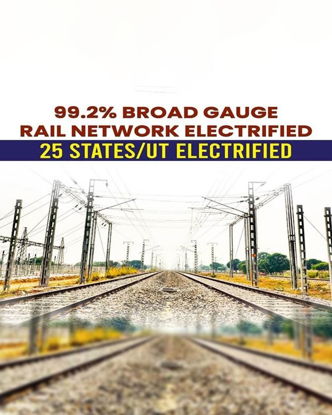 Railways is on verge of completing electrification on almost its entire board gauge network with more than 99% electrification completed across 25 states Uts.