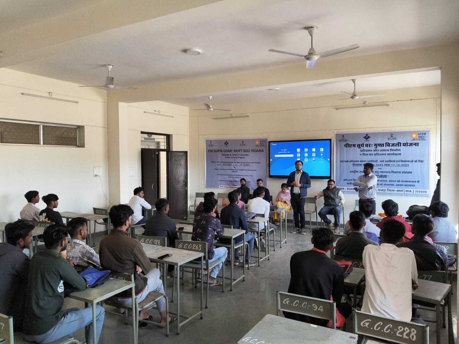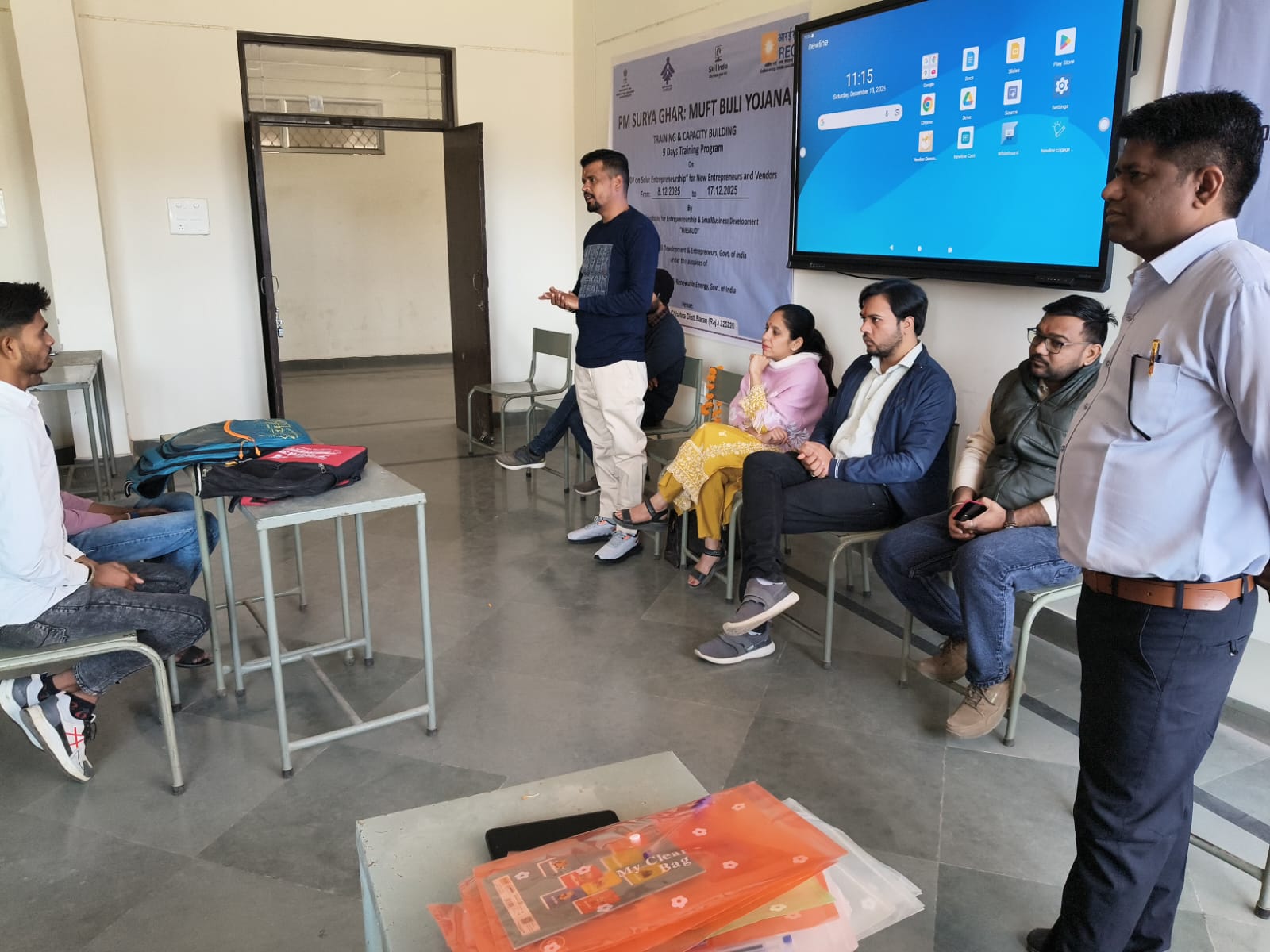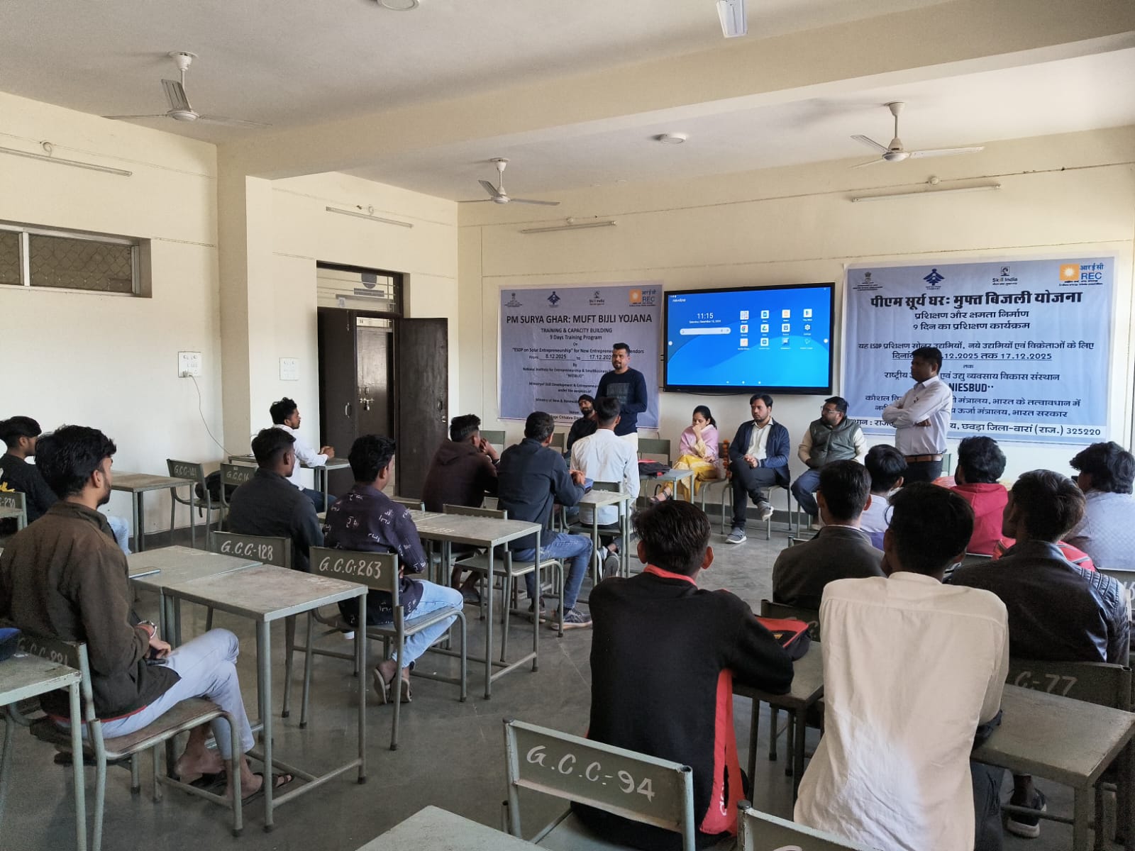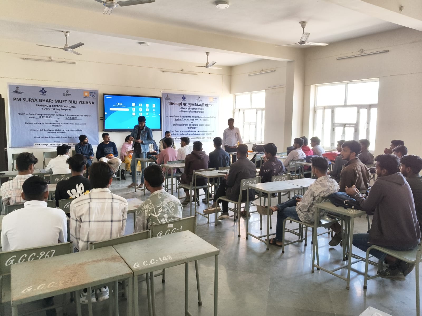 प्रधानमंत्री सूर्य घर – मुफ्त बिजली योजना के अंतर्गत **राष्ट्रीय उद्यमिता एवं लघु व्यवसाय विकास संस्थान (NIESBUD), नोएडा** द्वारा आयोजित एवं **भारत सरकार के कौशल विकास एवं उद्यमिता विभाग तथा MSME** द्वारा प्रायोजित **9 दिवसीय आवासीय सोलर टेक्नीशियन प्रशिक्षण शिविर** का शुभारंभ **दिनांक 13 दिसंबर (शनिवार)** को **राजकीय महाविद्यालय, छबड़ा** में हुआ।