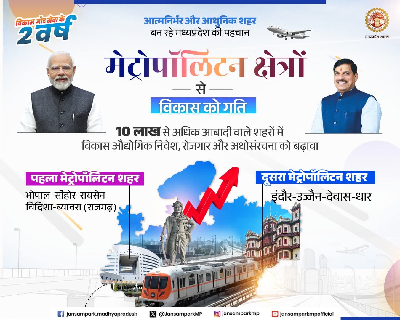 10 लाख से अधिक आबादी वाले शहरों में विकास, औद्योगिक निवेश, रोजगार और अधोसंरचना को बढ़ावा