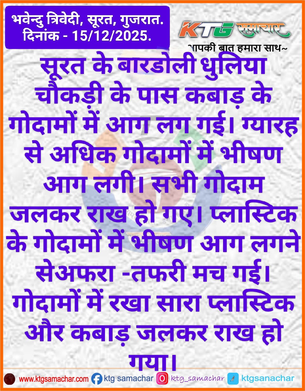 सूरत के बारडोली धूलिया चौकड़ी के पास कबाड़ के गोदामों में आग लग गई।