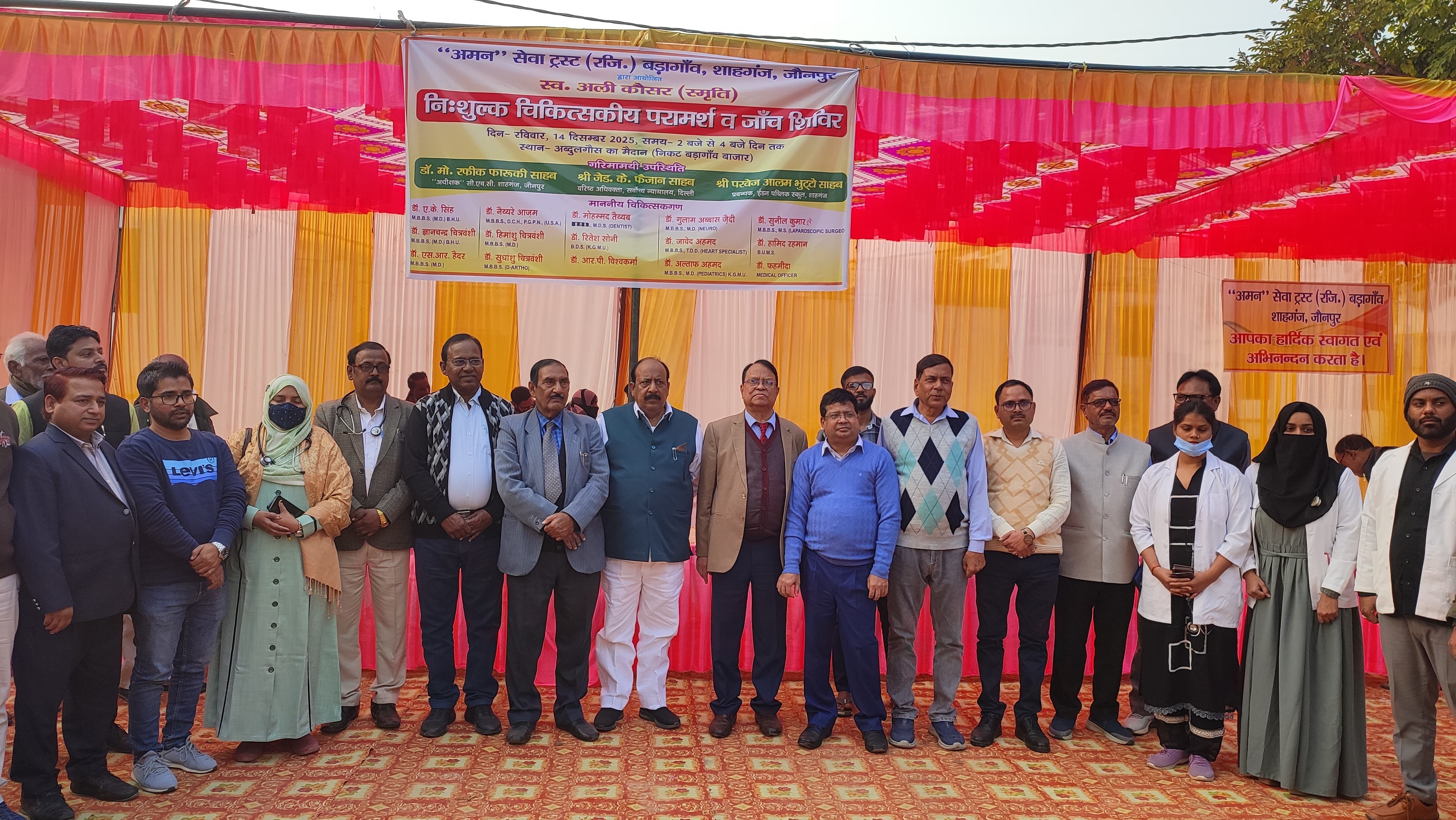 कोतवाली क्षेत्र अंतर्गत बड़ागांव में अमन सेवा ट्रस्ट के तत्वावधान में स्वर्गीय अली कौसर की स्मृति में नि:शुल्क चिकित्सकीय परीक्षण एवं जांच शिविर का आयोजन किया गया। शिविर में आसपास के ग्रामीण क्षेत्रों से पहुंचे 150 से अधिक मरीजों का अनुभवी चिकित्सकों द्वारा स्वास्थ्य परीक्षण किया गया तथा आवश्यक दवाएं नि:शुल्क वितरित की गईं।