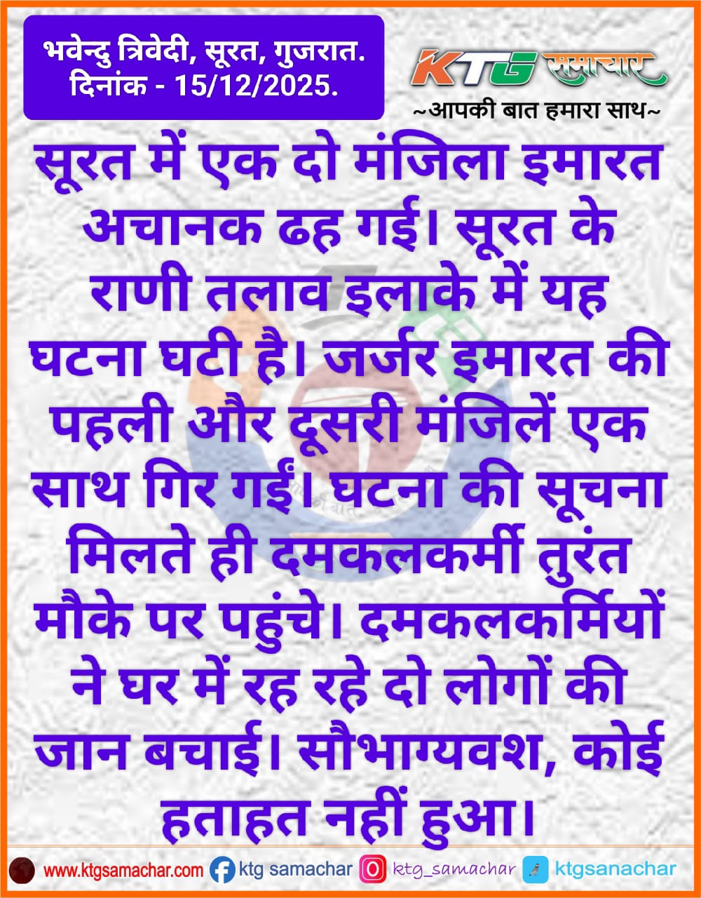 सूरत में एक दो मंजिला इमारत अचानक ढल गई।