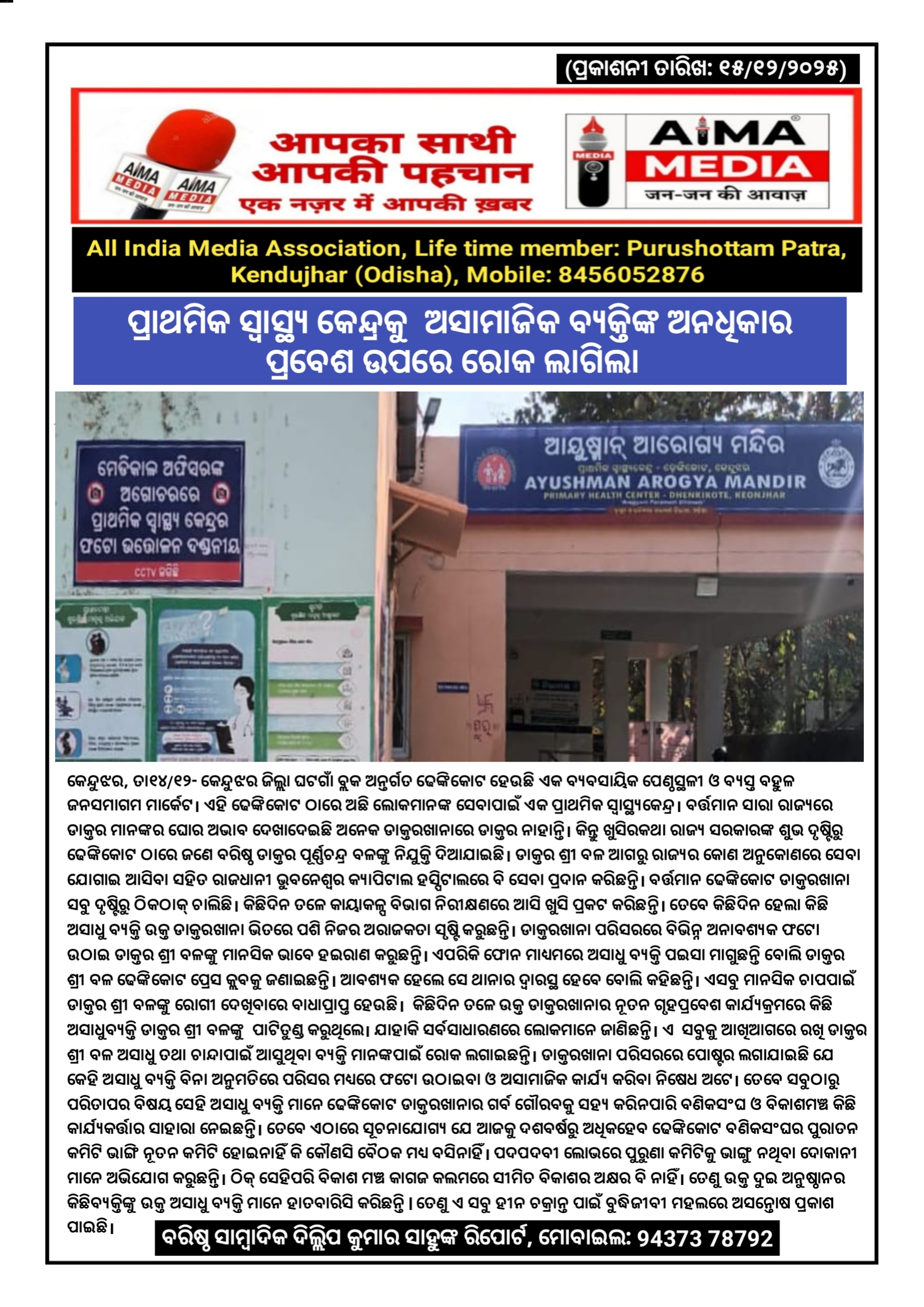 ବରିଷ୍ଠ ସାମ୍ବାଦିକ ଦିଲ୍ଲିପ କୁମାର ସାହୁଙ୍କ ରିପୋର୍ଟ, ମୋବାଇଲ: 94373 78792