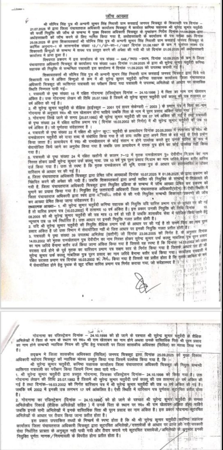 चित्रकूट के चर्चित कर्मचारी की संपत्ति जांच को मुख्यमंत्री को भेजा पत्र कम समय की नौकरी पर बनायी करोडो की संपत्ति