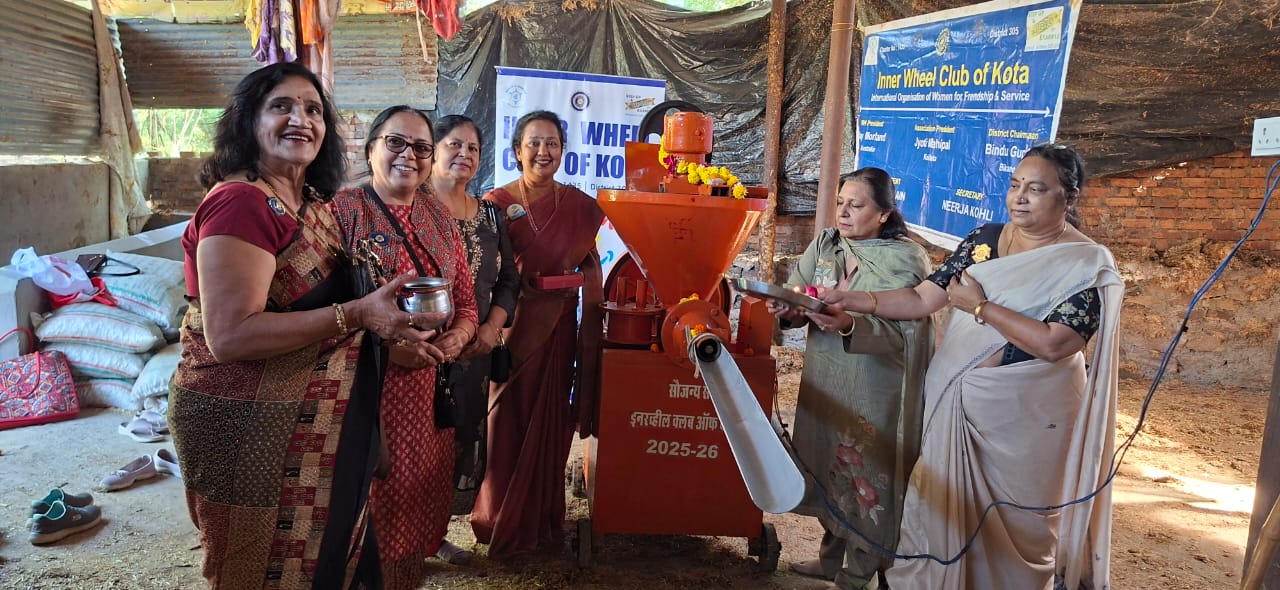 कोटा। इनरव्हील क्लब द्वारा पर्यावरण संरक्षण एवं गो-संवर्धन की दिशा में एक सराहनीय पहल करते हुए रंगपुर गोशाला में गो-काष्ठ निर्माण मशीन स्थापित की गई। मशीन का शुभारंभ वैदिक मंत्रोच्चार एवं विधिवत पूजापाठ के साथ किया गया।