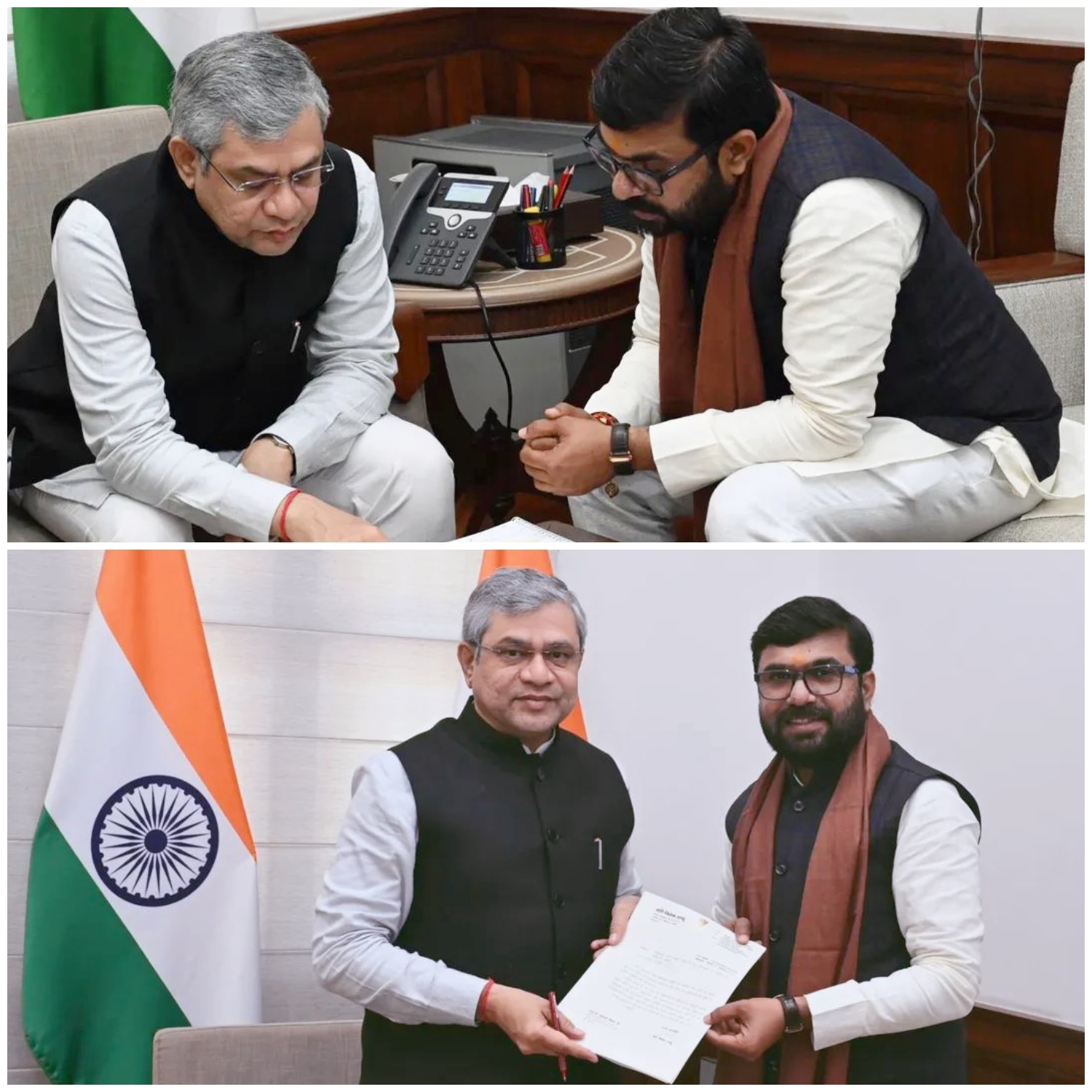 केन्द्रीय रेल मंत्री अश्विनी वैष्णव से सांसद बंटी विवेक साहू ने रेल सुविधाओं के विस्तार को लेकर की चर्चा