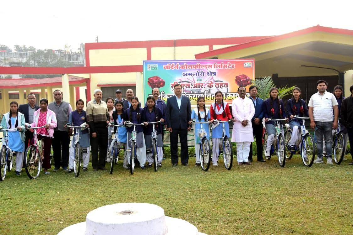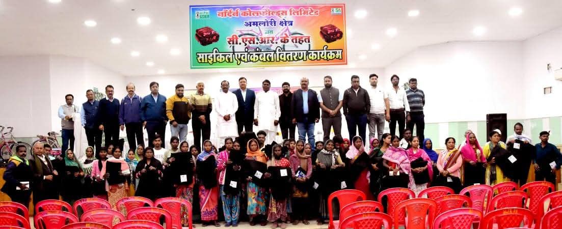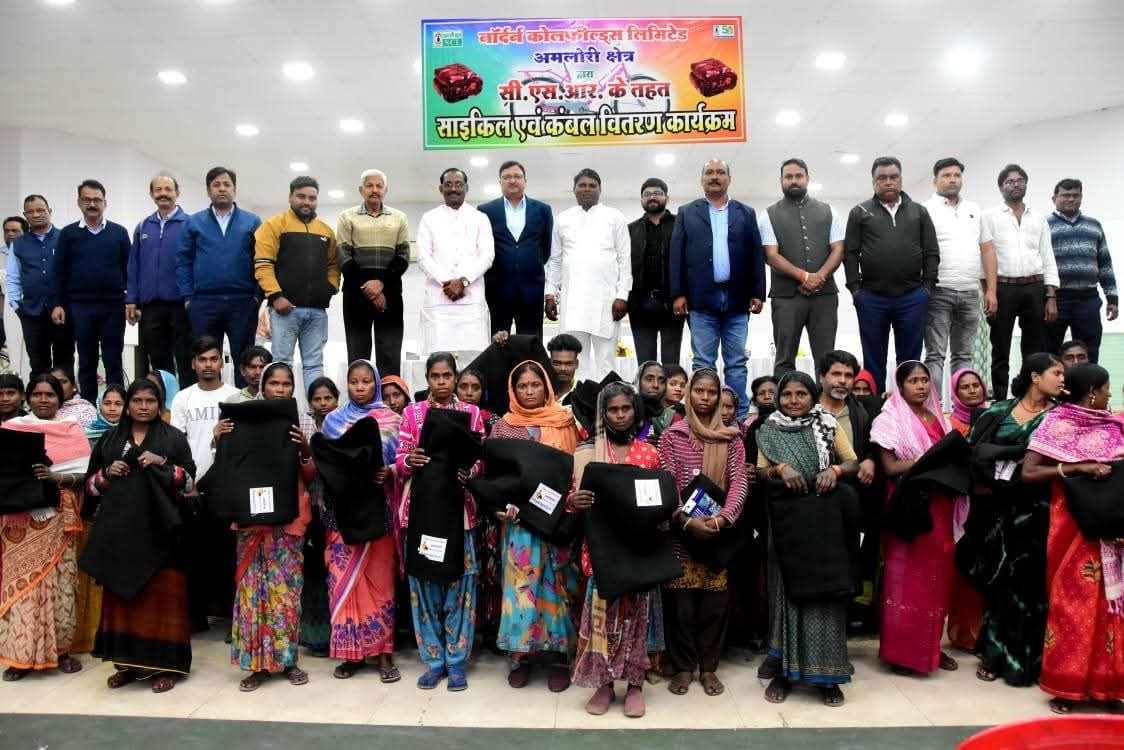 एनसीएल अमलोरी क्षेत्र में सीएसआर के अंतर्गत साइकिल एवं कंबल वितरण कार्यक्रम का आयोजन