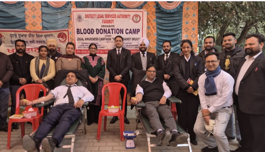 ਫ਼ਰੀਦਕੋਟ:18, ਦਸੰਬਰ ( ਕੰਵਲ ਸਰਾਂ/ਗੌਤਮ ਬਾਂਸਲ) ਜ਼ਿਲ੍ਹਾ ਅਤੇ ਸੈਸ਼ਨ ਜੱਜ ਫਰੀਦਕੋਟ ਦੀ ਰਹਿਨੁਮਾਈ ਹੇਠ ਅਤੇ ਮਾਨਯੋਗ ਮੈਂਬਰ ਸਕੱਤਰ, ਪੰਜਾਬ ਰਾਜ ਕਾਨੂੰਨੀ ਸੇਵਾਵਾਂ ਅਥਾਰਟੀ, ਐੱਸ.ਏ.ਐੱਸ. ਨਗਰ ਦੇ ਹੁਕਮਾਂ ਦੀ ਪਾਲਣਾ ਕਰਦੇ ਹੋਏ ਸਬ-ਡਵੀਜ਼ਨ ਕੋਰਟ ਕੰਪਲੈਕਸ ਜੈਤੋ ਵਿਖੇ ਖੂਨ-ਦਾਨ ਕੈਂਪ ਲਗਾਇਆ ਗਿਆ। ਇਹ ਕੈਂਪ ਸ੍ਰੀ ਸੰਜੀਵ ਜੋਸ਼ੀ ਜ਼ਿਲ੍ਹਾ ਅਤੇ ਸੈਸ਼ਨਜ਼ ਜੱਜ ਸਹਿਤ ਚੇਅਰਮੈਨ ਜ਼ਿਲ੍ਹਾ ਕਾਨੂੰਨੀ ਸੇਵਾਵਾਂ ਅਥਾਰਟੀ ਫਰੀਦਕੋਟ ਦੀ ਅਗਵਾਈ ਹੇਠ ਸਕੱਤਰ ਜ਼ਿਲ੍ਹਾ ਕਾਨੂੰਨੀ ਸੇਵਾਵਾਂ ਅਥਾਰਟੀ ਫਰੀਦਕੋਟ ਵੱਲੋਂ ਆਯੋਜਿਤ ਕੀਤਾ ਗਿਆ।