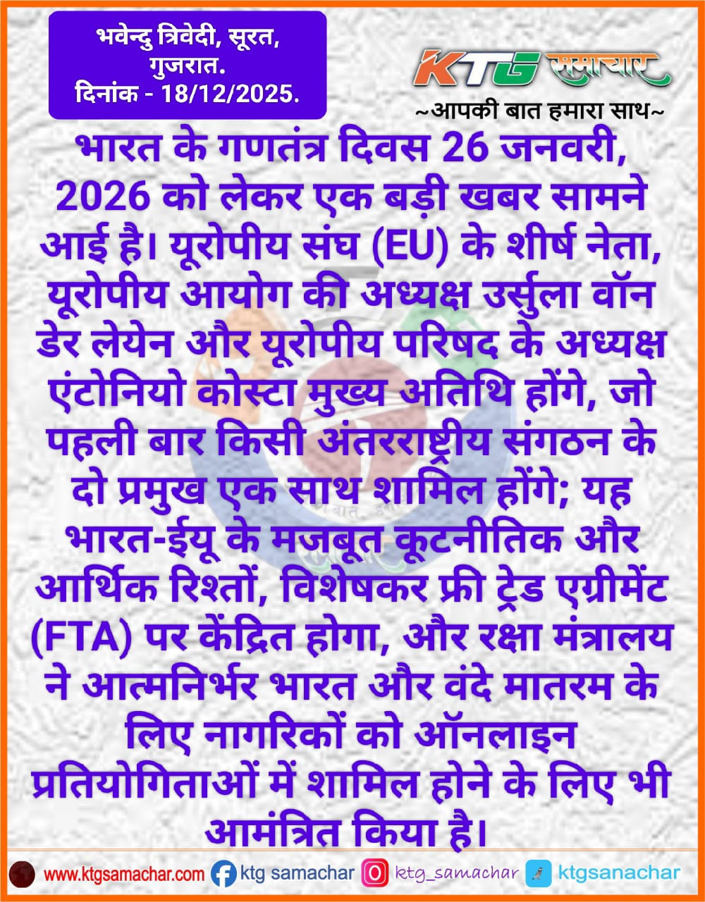 भारत के गणतंत्र दिवस 26 जनवरी, 2026 को लेकर एक बड़ी खबर सामने आई है।