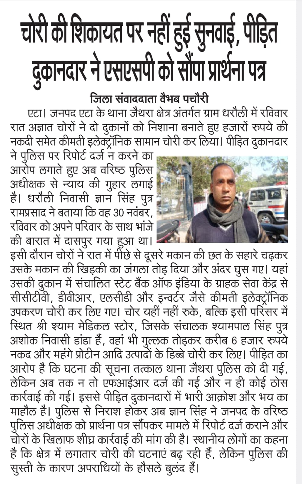 जिल एटा थाना जैथरा क्षेत्र ग्राम धरौली का मामला