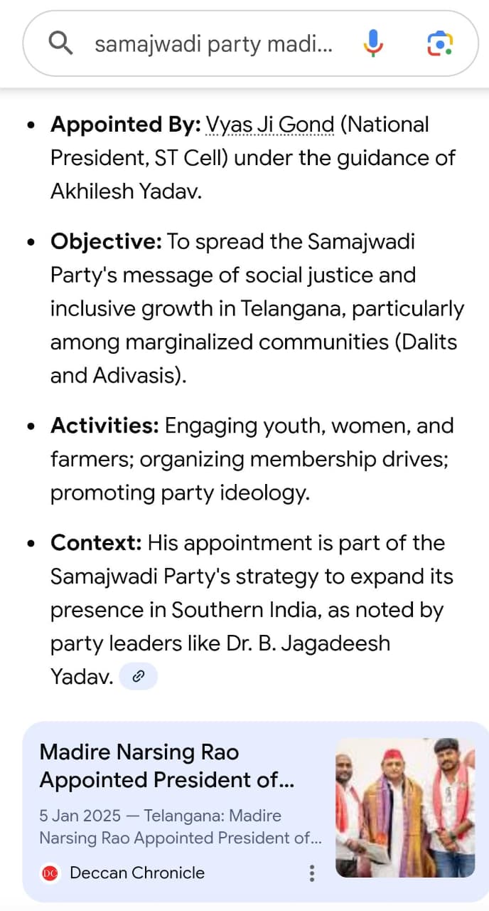 Samajwadi party for appointing me as the President of Telangana SC/ST- Scheduled Castes & Scheduled Tribes Cell