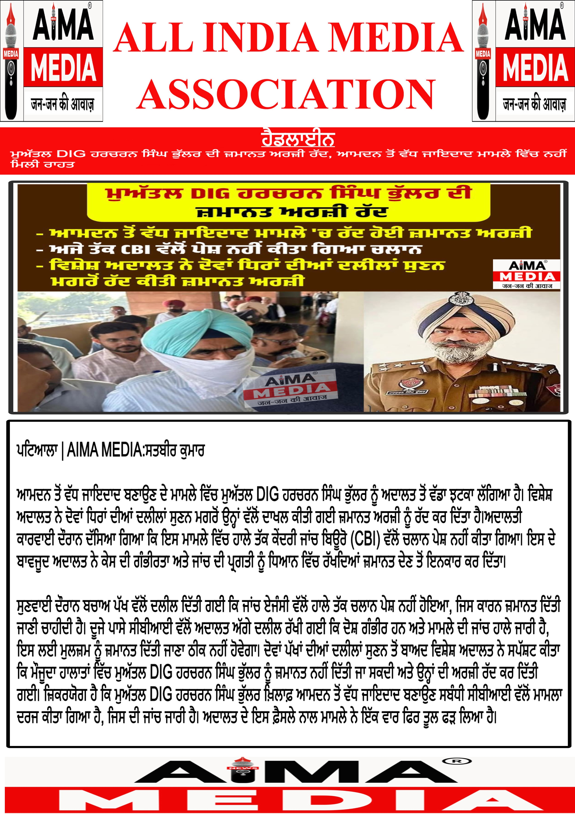 ਮੁਅੱਤਲ DIG ਹਰਚਰਨ ਸਿੰਘ ਭੁੱਲਰ ਦੀ ਜ਼ਮਾਨਤ ਅਰਜ਼ੀ ਰੱਦ, ਆਮਦਨ ਤੋਂ ਵੱਧ ਜਾਇਦਾਦ ਮਾਮਲੇ ਵਿੱਚ ਨਹੀਂ ਮਿਲੀ ਰਾਹਤ | #news @news @india #india