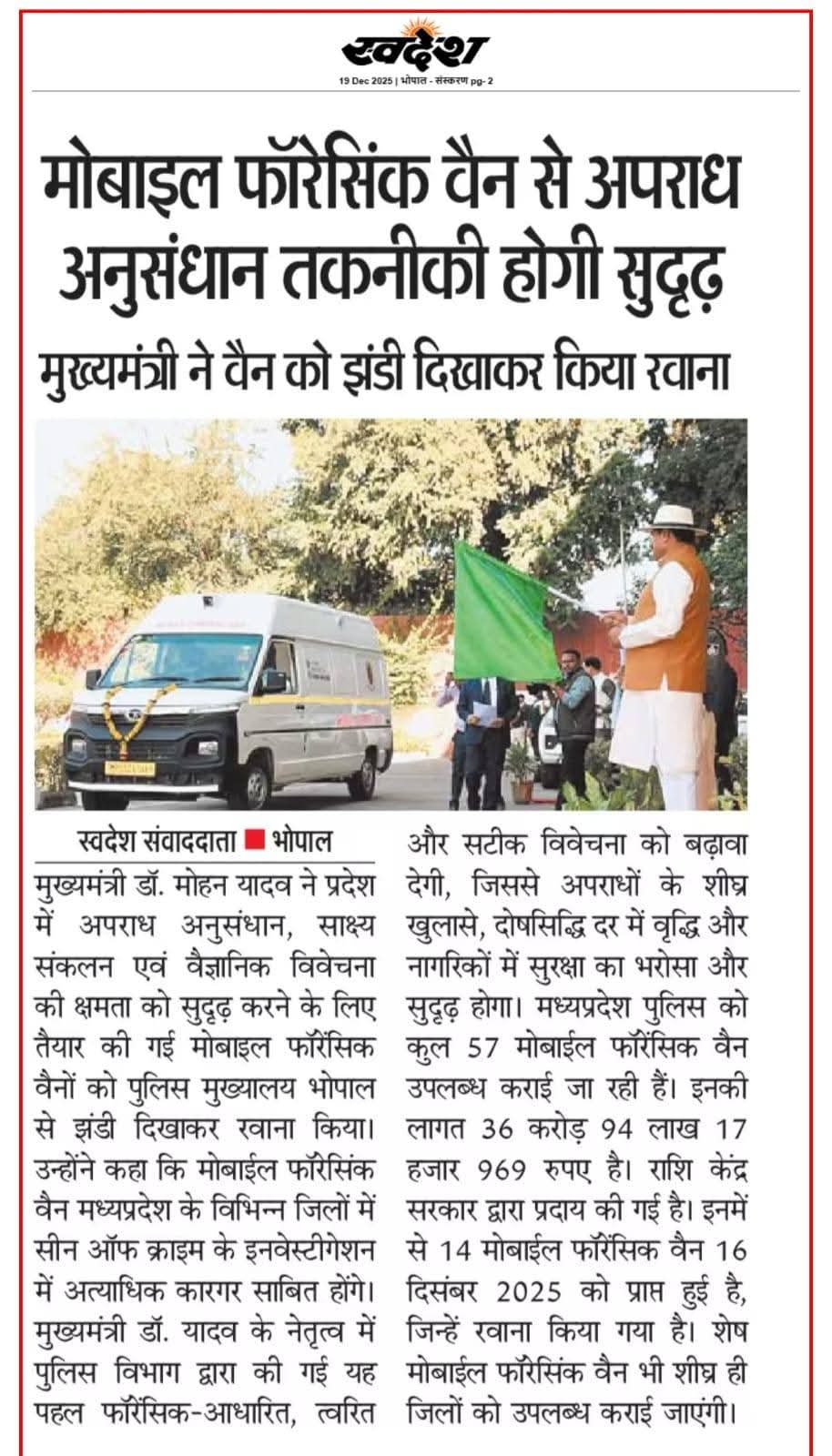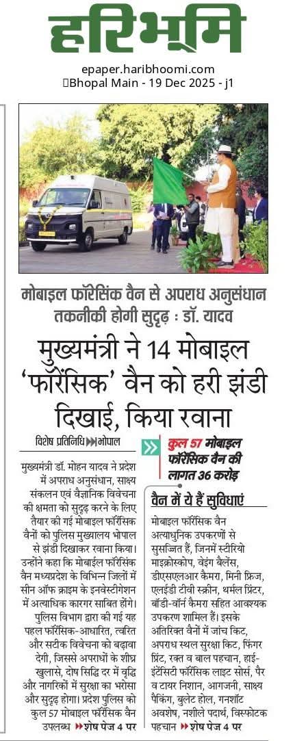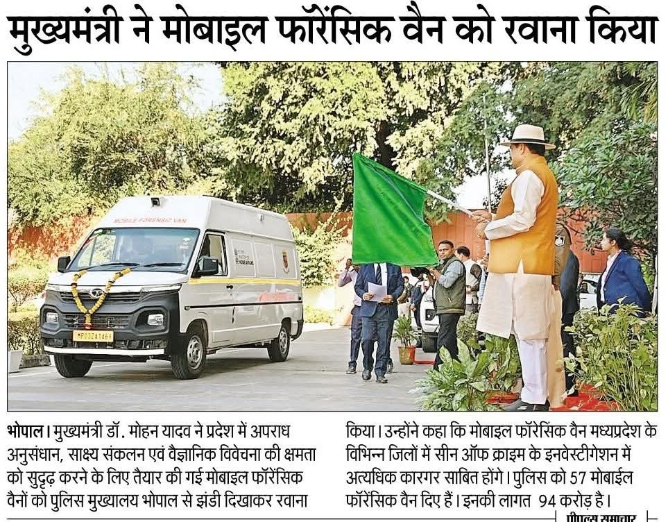 मुख्यमंत्री डॉ मोहन यादव ने मोबाइल फाॅरेंसिक वैन को किया रवाना