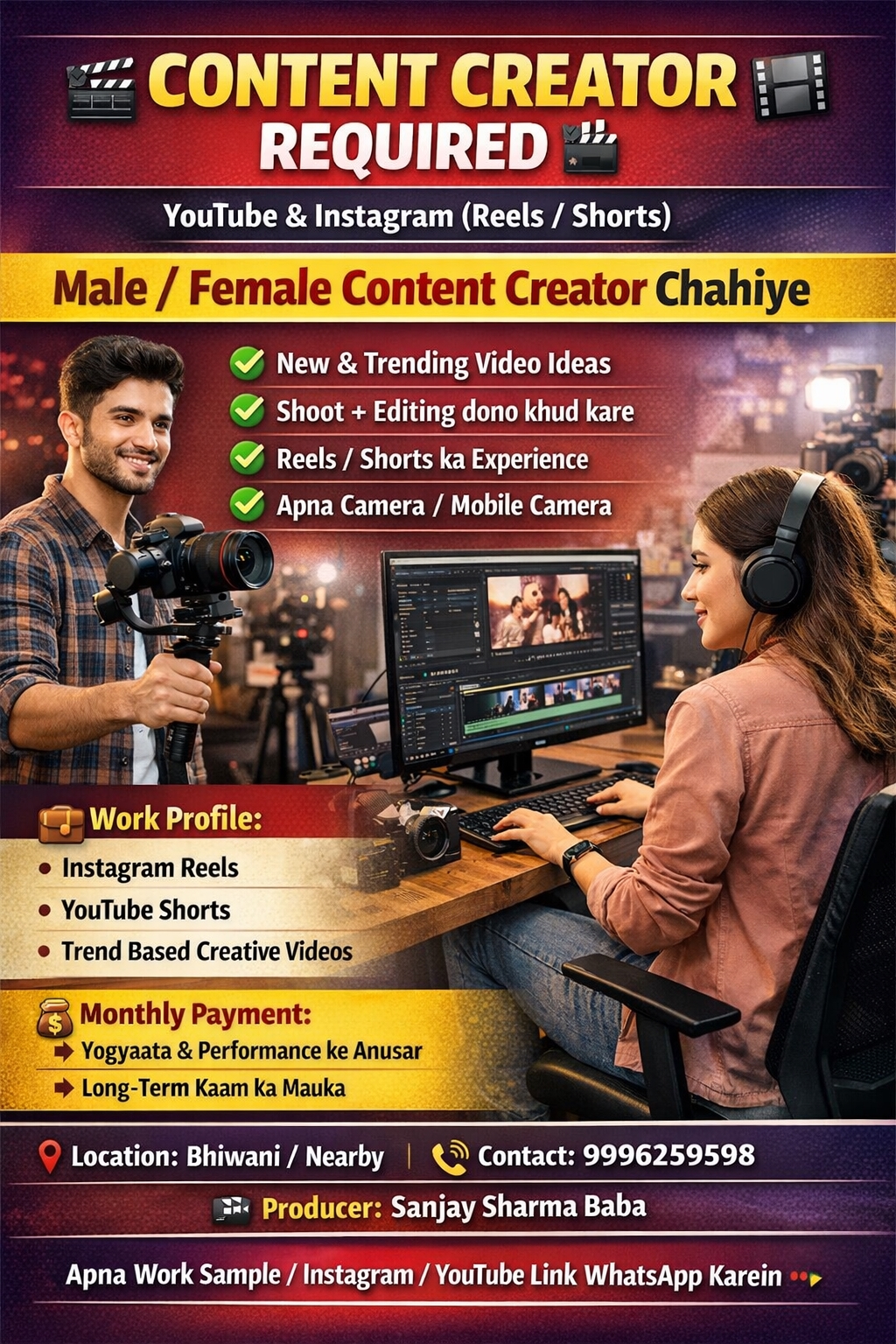 Bhiwani mein YouTube aur Instagram ke liye Content Creators ki zarurat