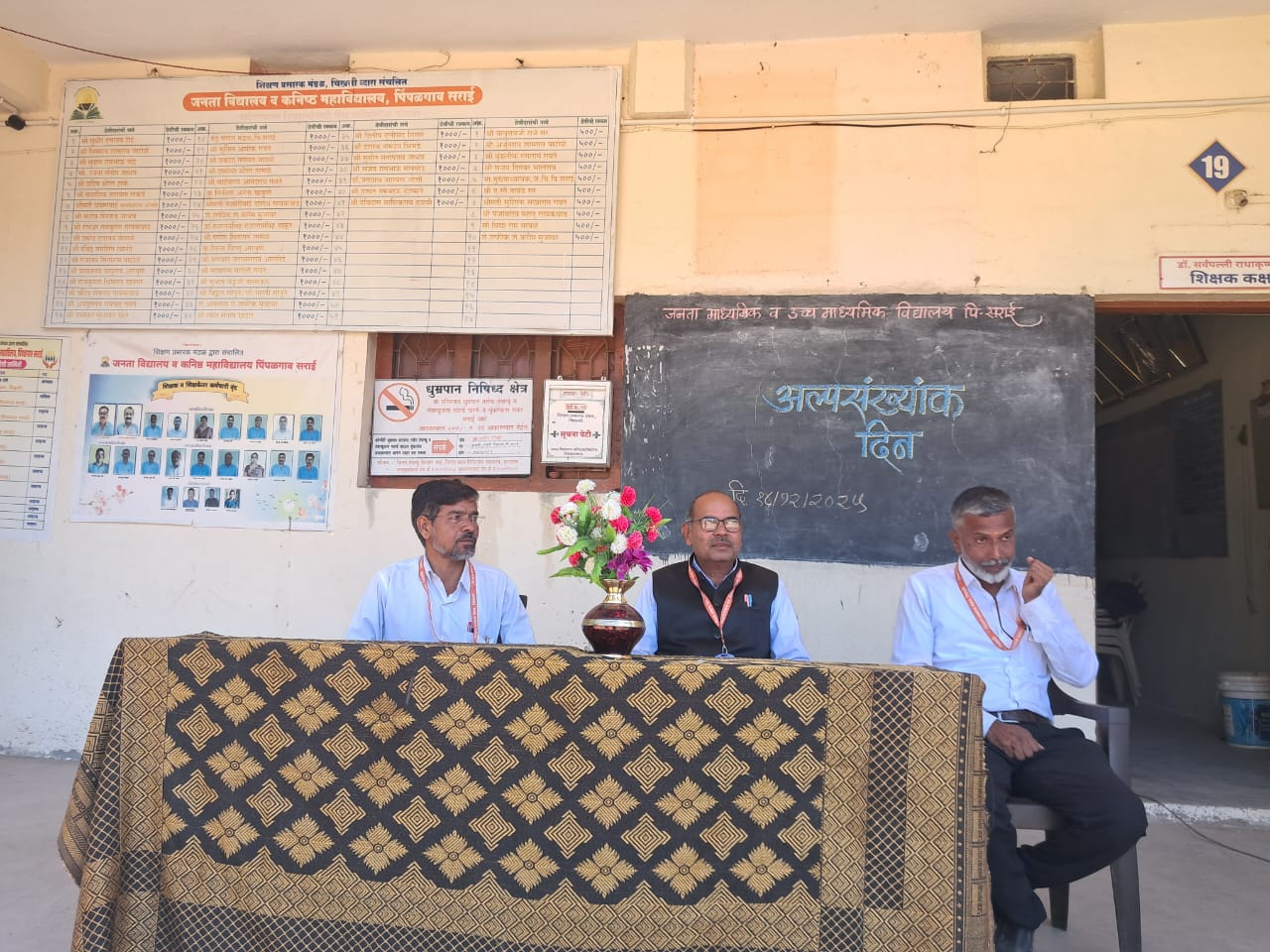 पिंपळगाव सराई, बुलढाणा , महाराष्ट्र : येथील जनता विद्यालय पिंपळगाव सराई येथे दि. १८ डिसेंबर २०२५ रोजी अल्पसंख्याक दिन उत्साहात साजरा करण्यात आला. कार्यक्रमाच्या अध्यक्षस्थानी विद्यालयाचे पर्यवेक्षक संजय पिवटे होते, तर प्रमुख वक्ते म्हणून अविनाश असोलकर यांनी मार्गदर्शन केले.