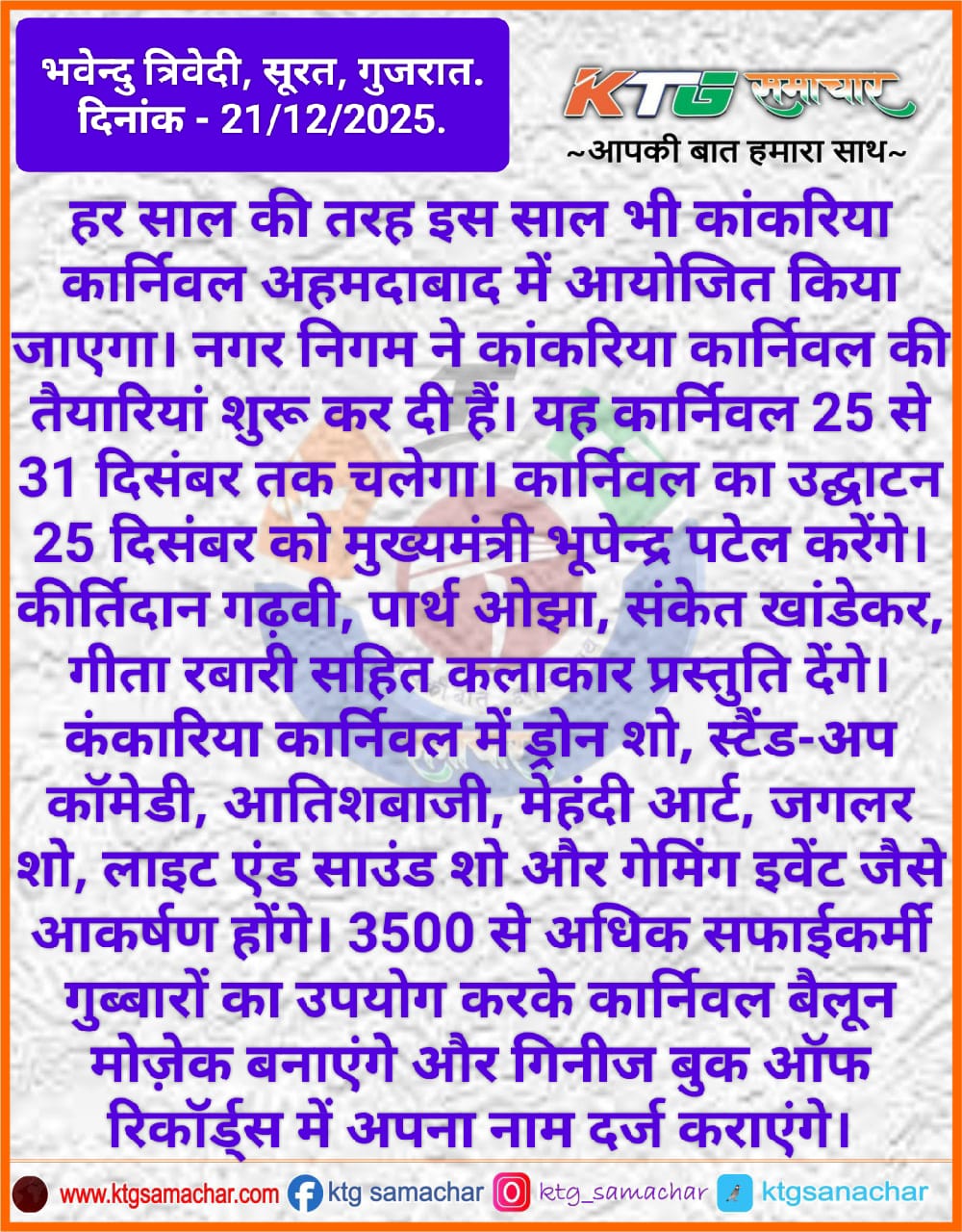 कांकरिया कार्निवल अहमदाबाद में आयोजित किया जाएगा।